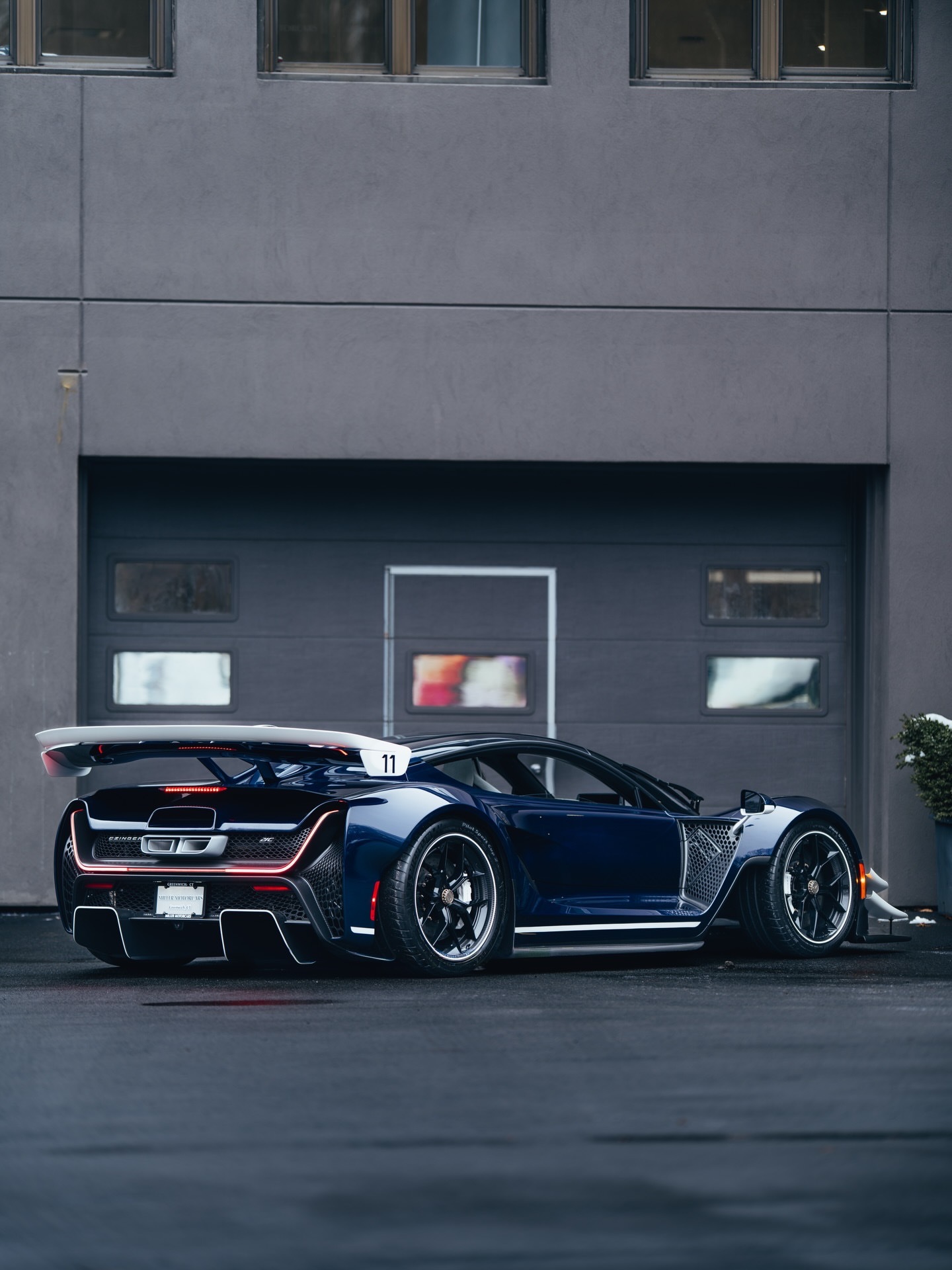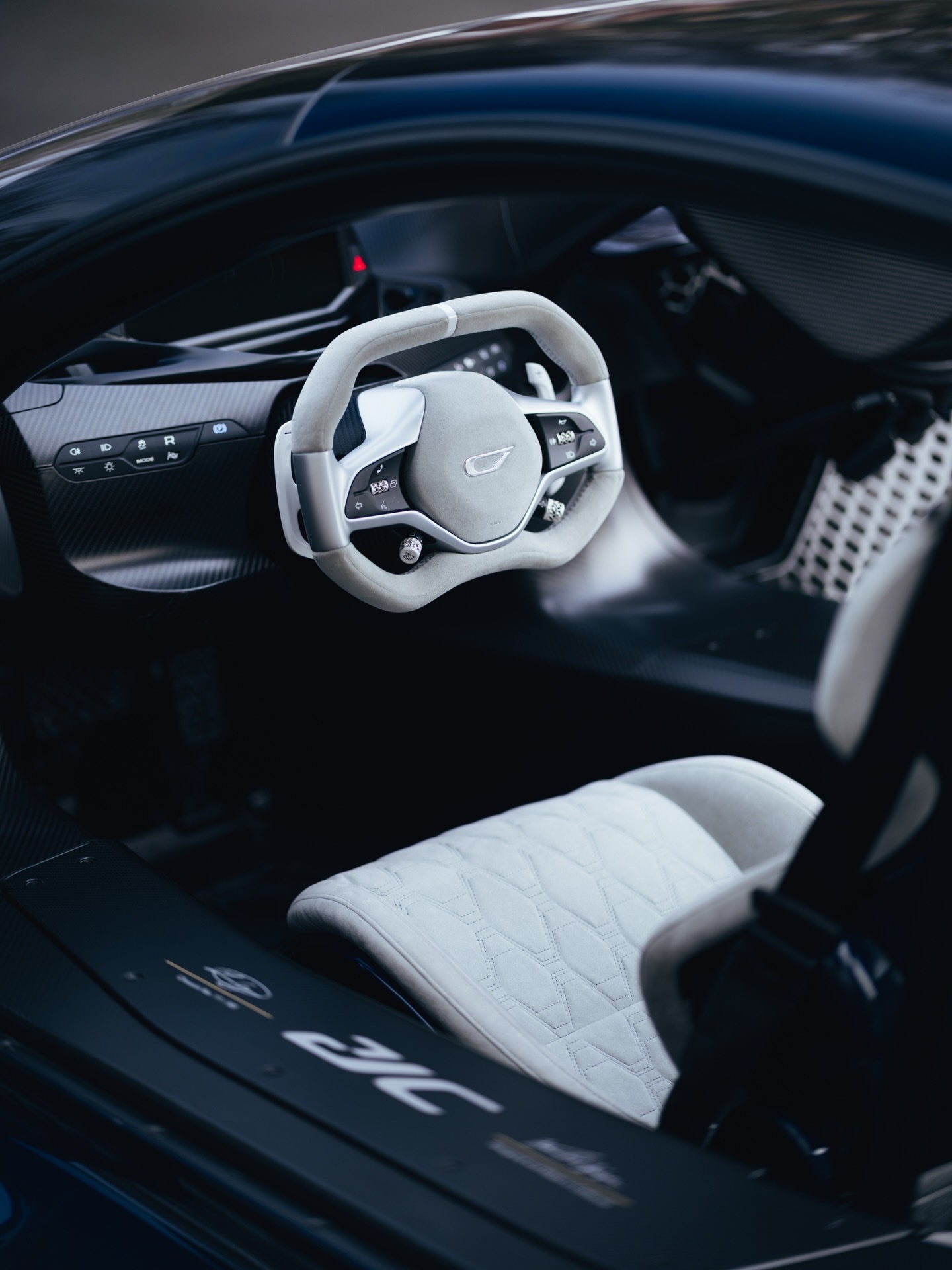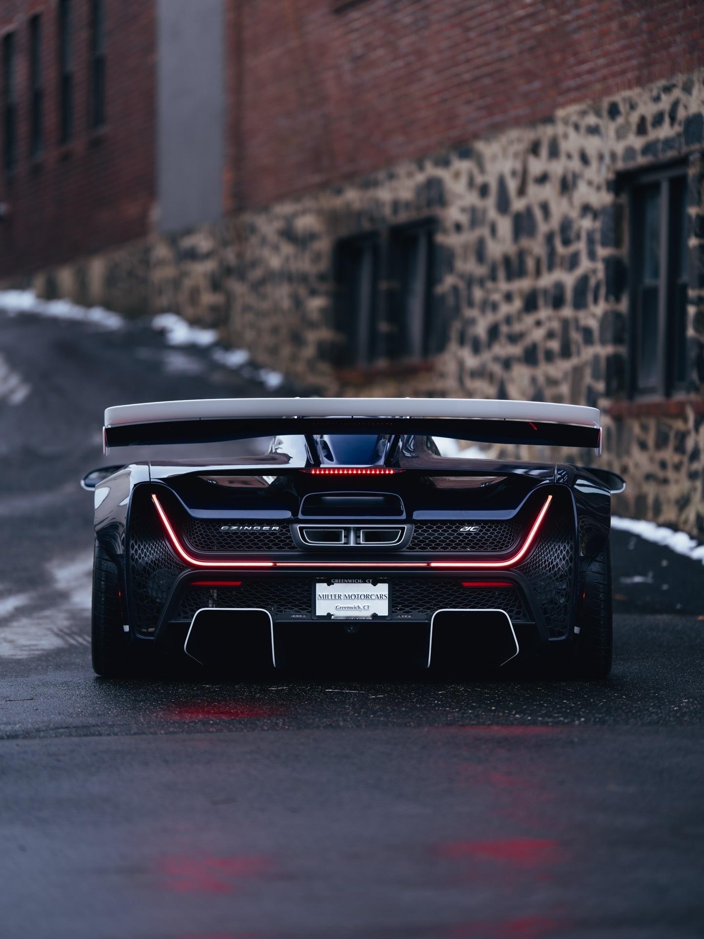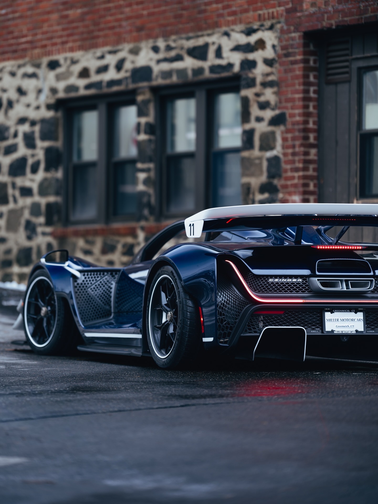 这款21C是21世纪最独特的车型之一。这款21C的高下压力变体展示了裸露的蓝色调碳纤维和白色装饰,以及一个引人注目的美国国旗细节,采用了负空间设计,蓝色碳纤维本身形成了国旗的蓝色背景,只有红色、白色条纹和星星被涂画在上。在整个车身其余部分,白色被巧妙地涂在空气动力学特征的底部和背面,模仿喷气式发动机尾焰,并增强了21C所知名的战斗机主题。Czinger老纪侃车豪车超跑