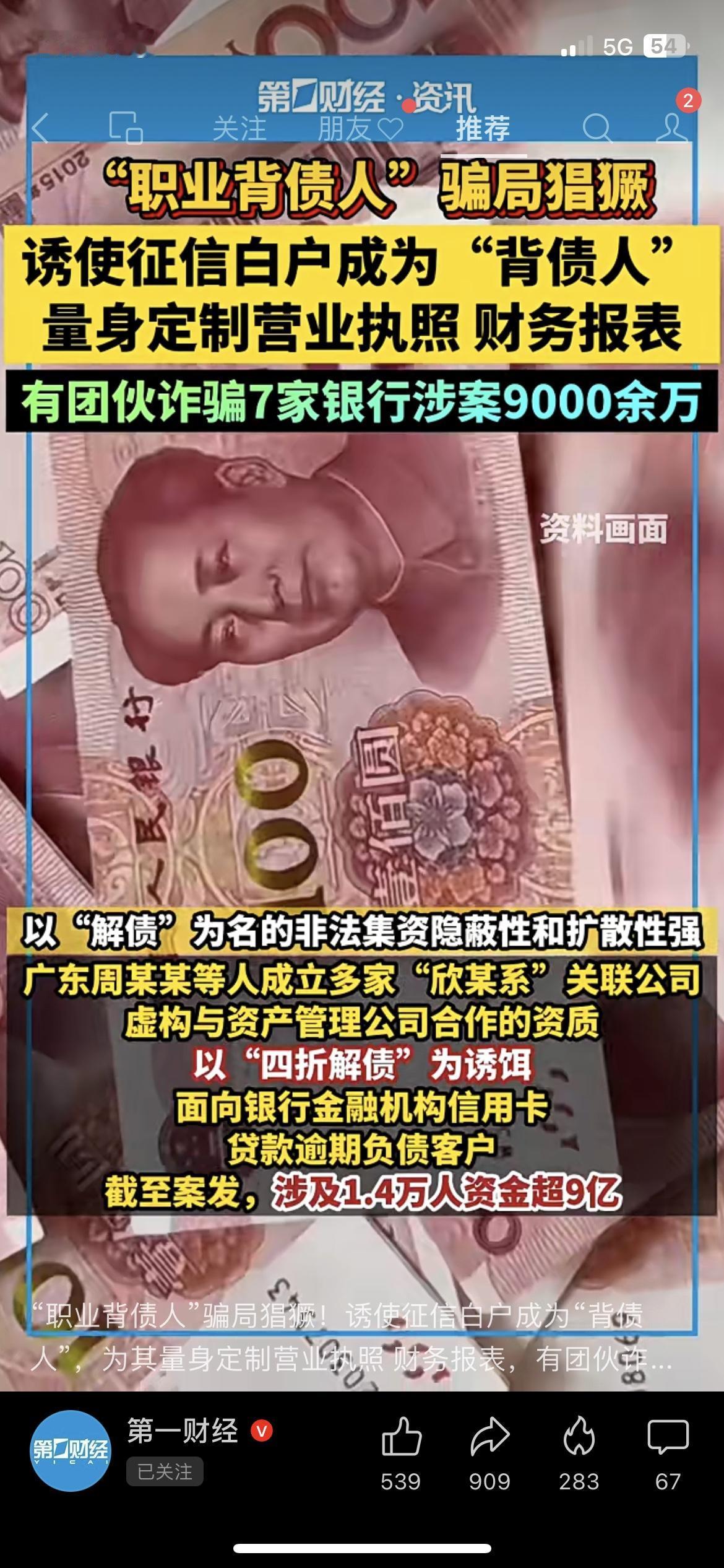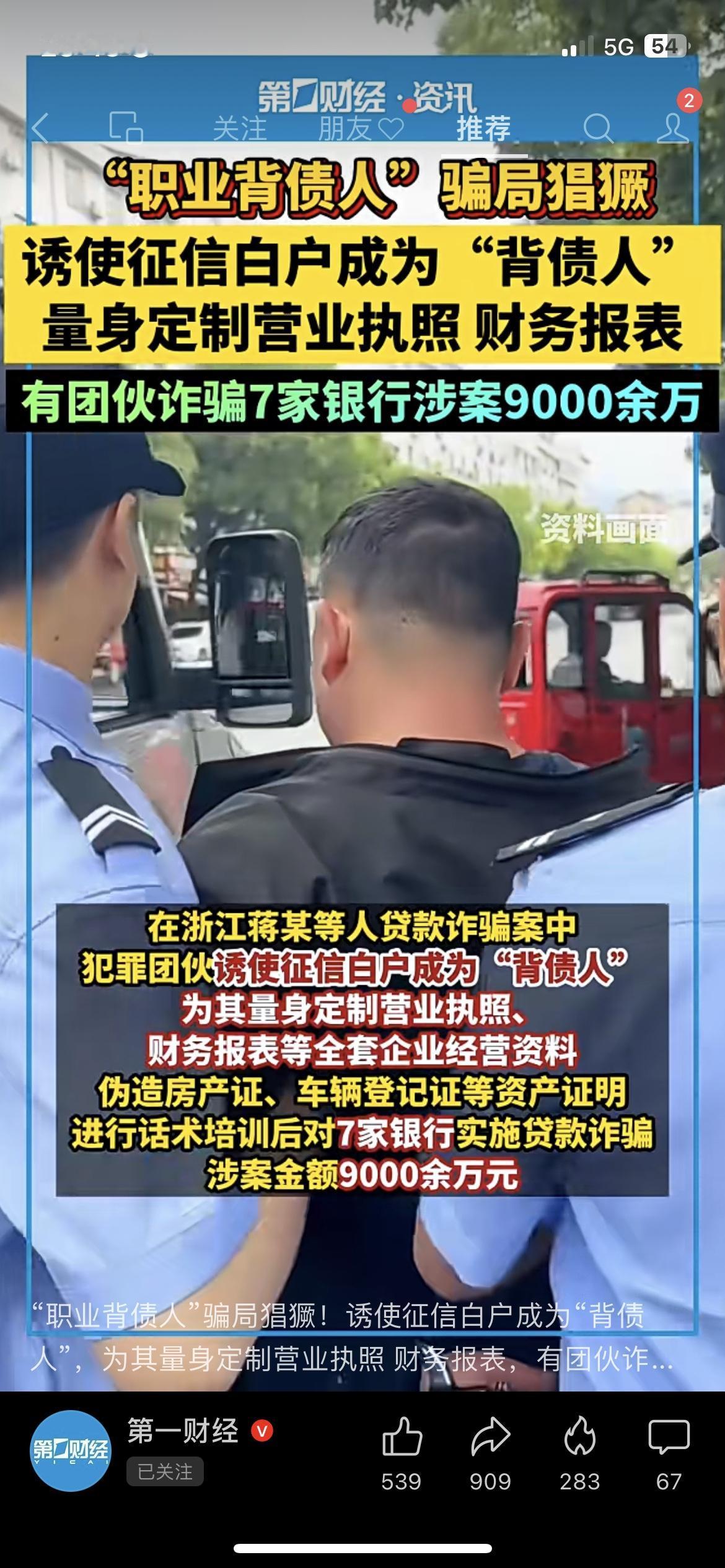 🔥涉案超300亿!专坑征信白户的“职业背债人”骗局,千万别碰! 真的太坑人了!现在居然有骗子盯上征信干净的人,打着“背债就能拿钱”的幌子,把人坑得倾家荡产还坐牢! 警方最近直接端了200多个这类犯罪团伙,涉案金额足足300亿!这帮骗子套路贼狠,专门找征信白户下手,给你伪造营业执照、做假的财务报表,忽悠你去给他们当“背债人”,帮团伙骗银行贷款,还说能分你一笔钱。 更离谱的是还有“四折解债”的套路,说白了就是非法集资,光一个案子就骗了1.4万人,卷走9个亿!有人真信了这套,最后不仅背上几百万的烂债,征信彻底黑掉,还因为涉嫌金融诈骗被抓,这辈子都毁了! 咱普通人一定要记死了:天上根本不会掉馅饼,但凡有人跟你说“不用干活,背债就能拿钱”,全是妥妥的骗局!征信白户不是你的软肋,反而是你的底气,千万别为了一点小钱,把自己的人生搭进去! 警方都已经重拳打击了,咱自己更得守住底线,别被这种歪门邪道的套路忽悠! 反诈提醒 职业背债人骗局 金融安全 大家身边有人听过这种骗局吗?要是有人跟你说能靠背债赚钱,你会信吗?征信贷款诈骗 职业背债人