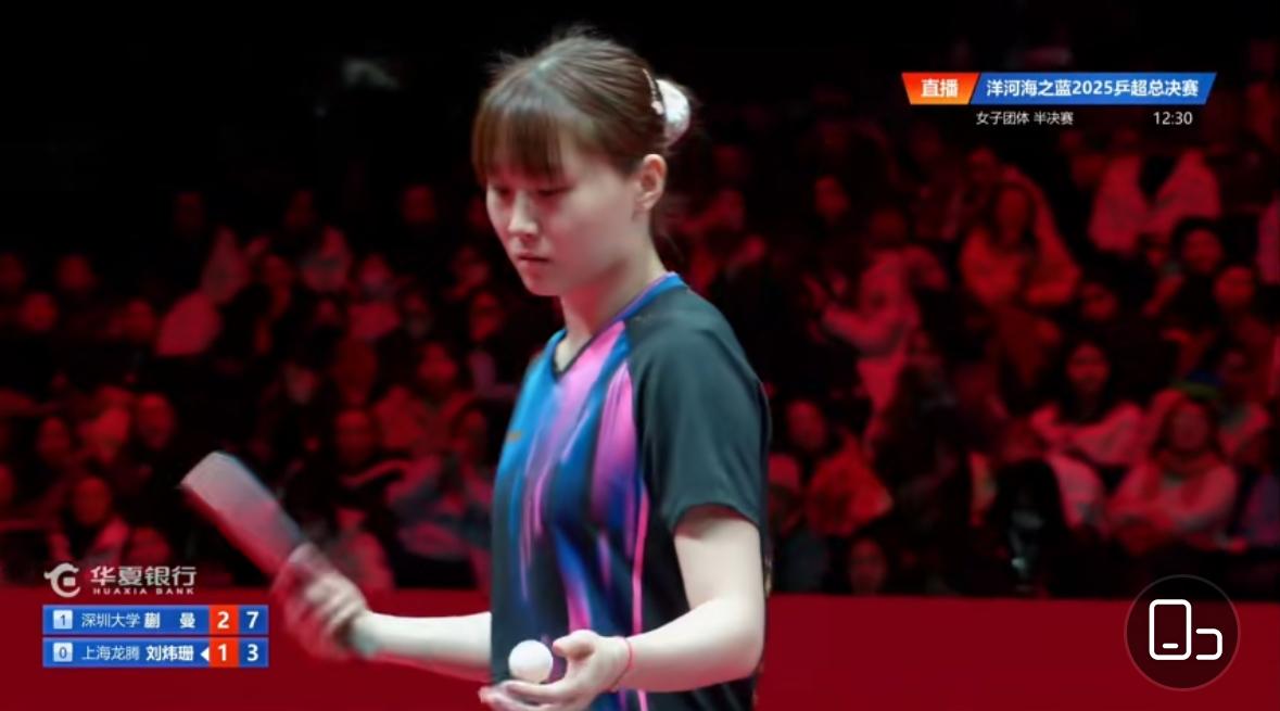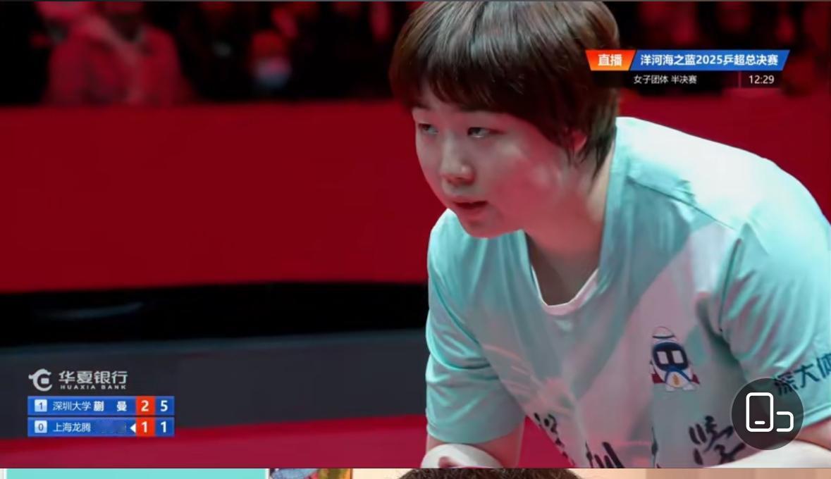 南京乒超总决赛蒯曼2:3刘炜珊 深圳大学晋级决赛成悬念 12月26日,乒超女团半决赛 深圳大学VS上海龙腾 第一盘 覃予宣/平野美宇3:2何卓佳/孙铭阳 11:7,11:8,8:11,11:13,11:9 第二盘 蒯曼2:3刘炜珊 11:2,9:11,11:9,10:12,8:11 第一盘,覃予宣/平野的双打太危险, 差一点被何卓佳组合翻盘! 蒯曼与刘炜珊的比赛比较轻松, 蒯曼目前世界排名第三, 实力比刘炜珊强太多, 不过刘炜珊打的非常顽强, 蒯曼的大赛经验丰富, 关键分处理的更好, 双方非常熟悉,谁赢都不容易! 刘炜珊打的更犀利,打欧洲联赛手感 正热,最终刘炜珊拿下比赛! 蒯曼遗憾了🙁! 第三盘覃予宣VS孙铭阳, 应该没有悬念! 深圳大学晋级决赛本来没问题👍 这次成为悬念重重了!