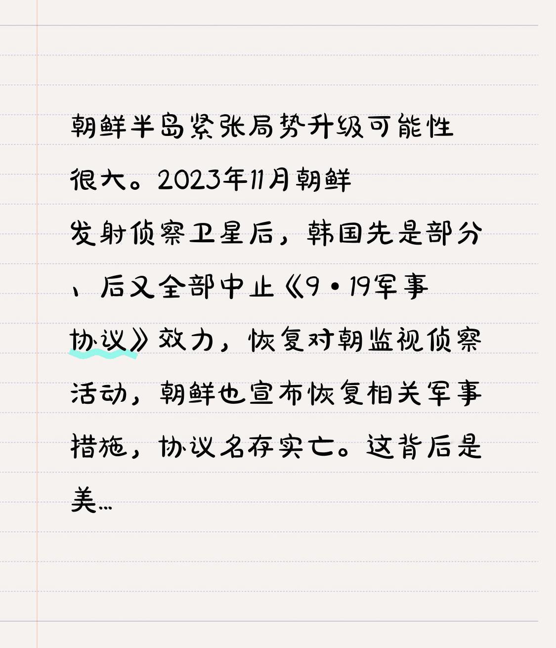朝鲜半岛紧张局势升级可能性很大。2023年11月朝鲜发射侦察卫星后,韩国先是部分