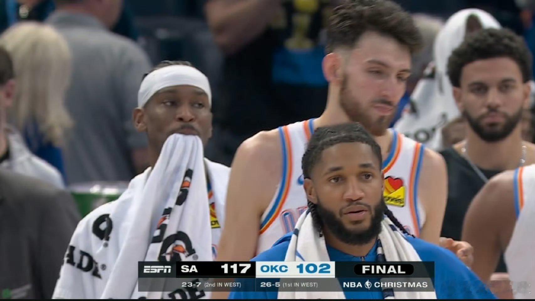 靠防守把雷霆从杯赛淘汰,终结雷霆16连胜。靠进攻送雷霆赛季第一场惨败。今天则是攻防全面压制,在圣诞大战舞台送雷霆赛季主场首败,完成对他们的三杀。这是雷霆自2021-22赛季以来第一次连续两场输至少15分,时隔7年重返圣诞大战舞台,而且又连续输给马刺两回,雷霆显然是把比赛当成一场季后赛焦点战在打,但最终还是一点脾气没有。赛季5次交锋马刺赢下前三局,这显然证明了一些事情,或者很多事情!马刺vs雷霆NBA圣诞大战