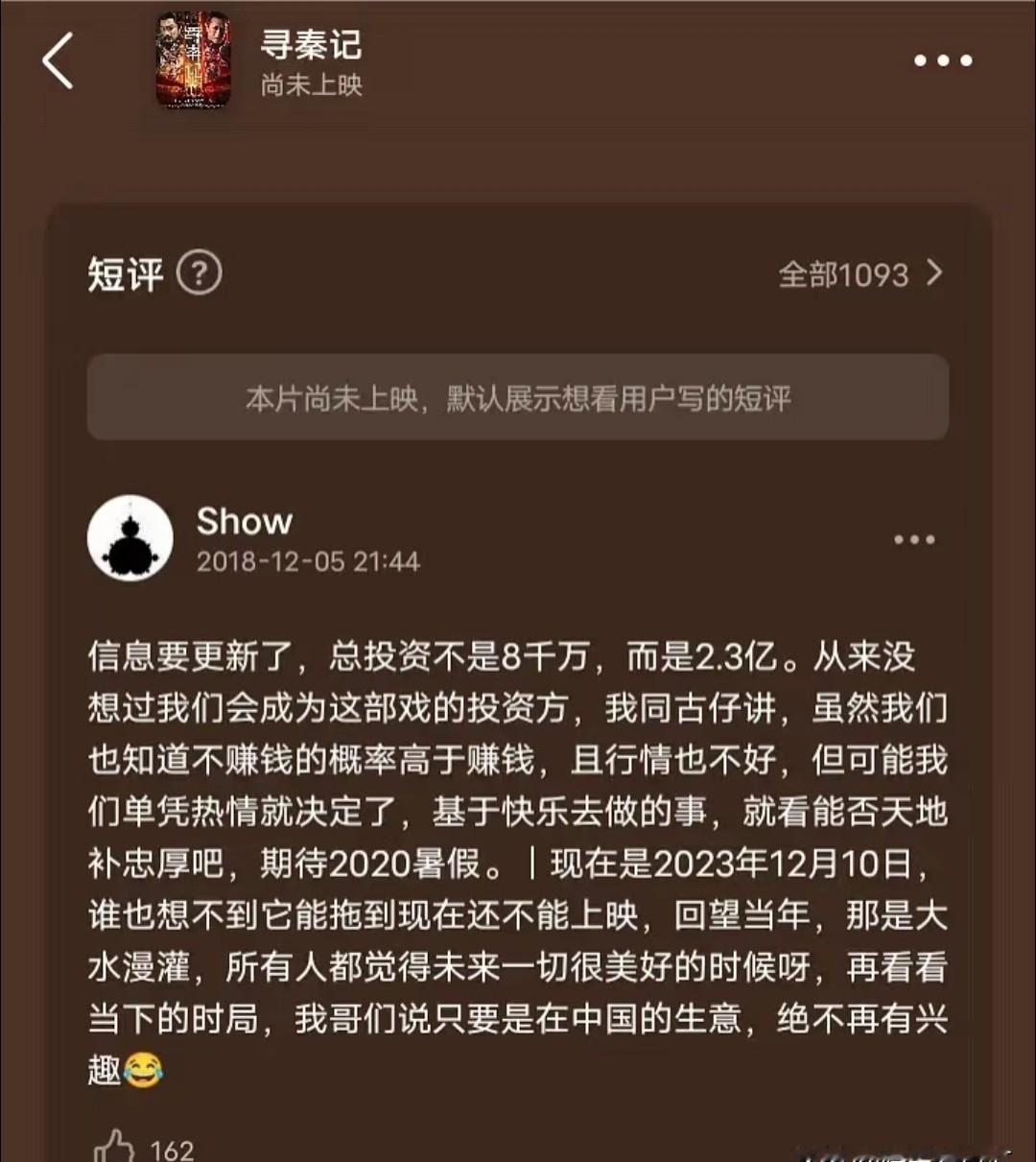 古天乐这次怕是要栽了。 《寻秦记》电影砸了2.3亿,想回本? 票房得卖到8个亿! 这简直是天方夜谭。2018年立项,拖到现在才上,古装片的红利期早过了。 看看现在的预售,才不到300万,简直是惨不忍睹。 情怀这张牌,在冷冰冰的市场数据面前,真有那么好使吗? 这2.3亿的投资,现在看就像一张沉船的船票。 想靠情怀把观众骗进电影院,这算盘打得太响了。 现在的观众,可不是那么好忽悠的。 一部电影,如果只能靠“想当年”来吸引人,那它就已经死了。 情怀,到底是最后的遮羞布,还是压垮骆驼的最后一根稻草?