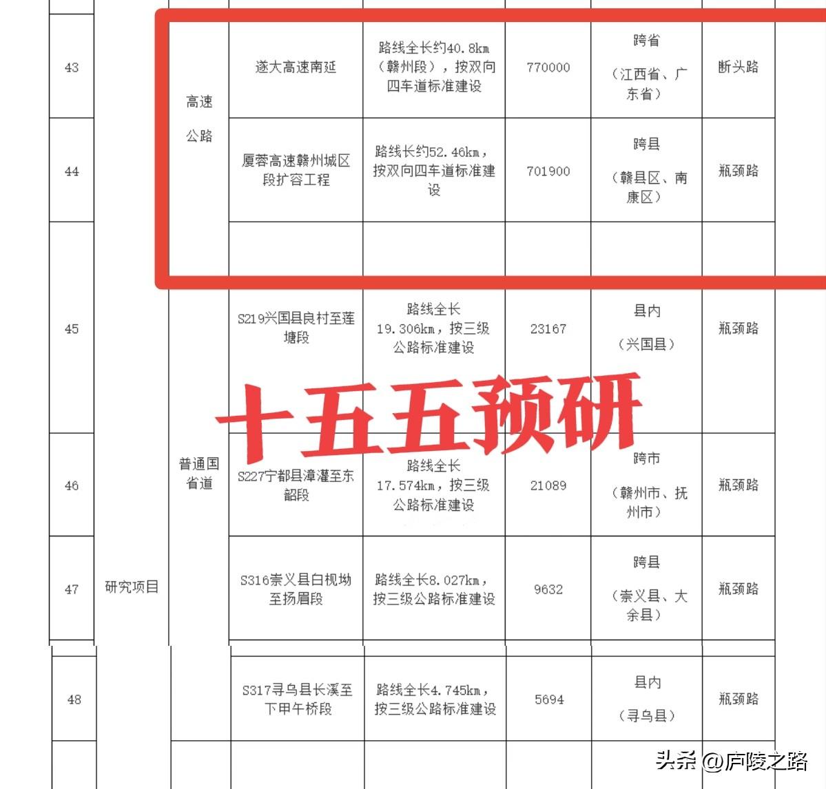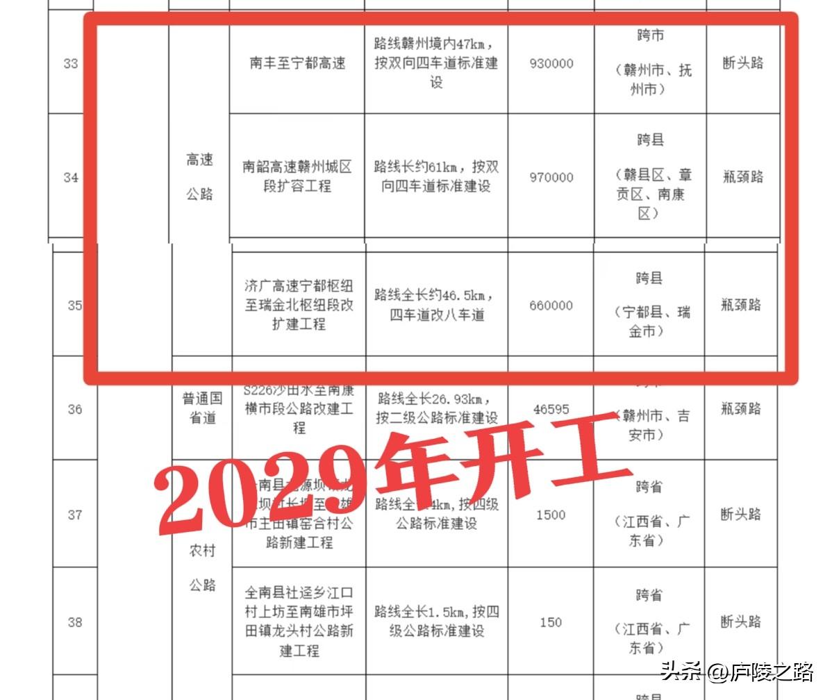好消息!赣州市2025 - 2030年高速公路项目建设规划重磅出炉啦!确定有“五”条高速公路开工,快来瞧瞧有没有经过你家乡? 2026年,赣州至安远高速公路将破土动工,同时还会新增开工大广高速公路龙南桃江互通。 2029 - 2030年,南丰至宁都高速公路、南韶高速赣州城区段扩容工程、济广高速宁都枢纽至瑞金北枢纽段改扩建工程这3个超级大通道项目将陆续开工。 “十五五”高速公路储备项目有2个:遂大高速南延、厦蓉高速赣州城区段扩容工程这两个大通道项目。