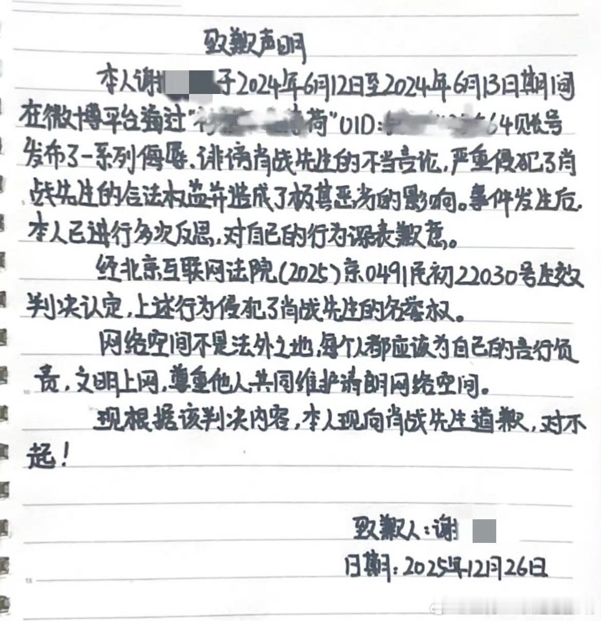 肖战连续两天收到黑粉道歉信,维权力度之大结算时刻了
