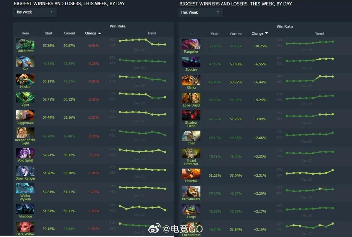 谁是版本答案?本周Dota2胜率变化最大vs最小英雄dota2电竞大数据DOTA2