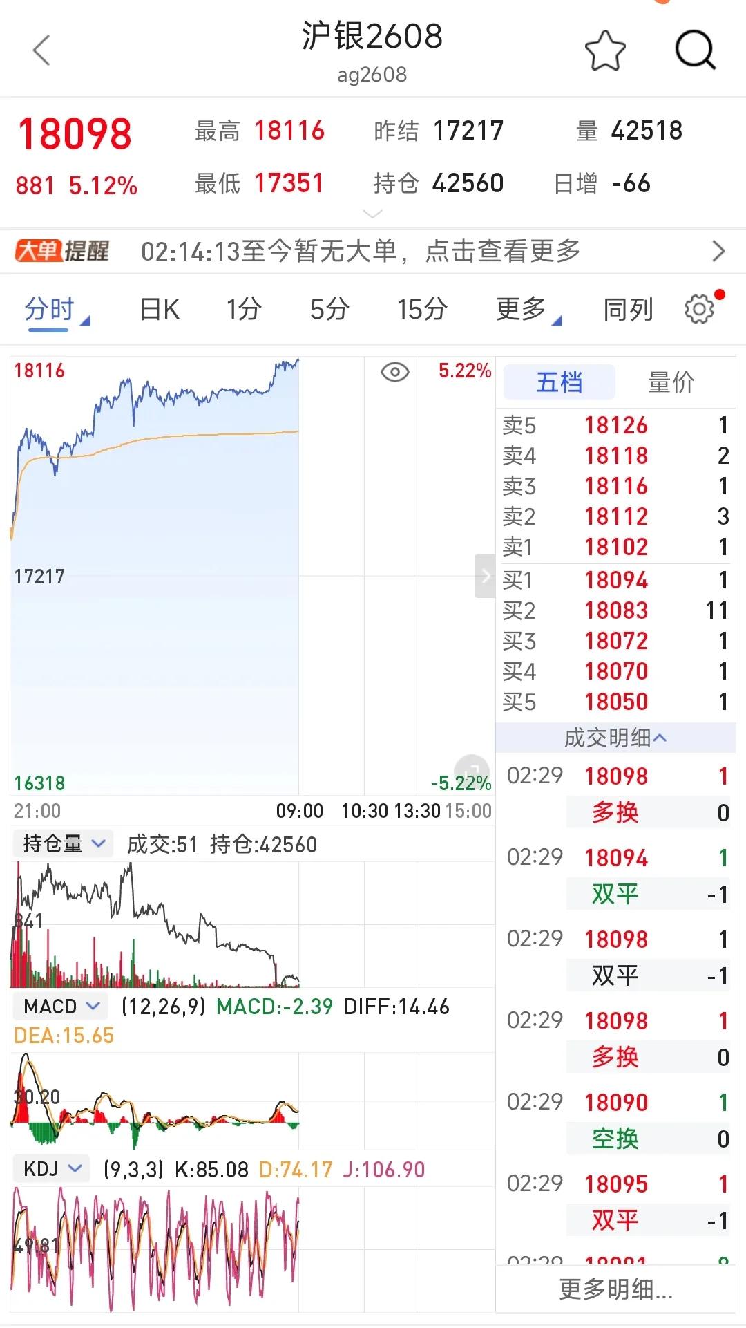 又尾盘走出背离形态,无量新高,估计开盘又会小砸一下,但现银开盘创了新高,估计会对期货有指导作用。逼空都这套路,画出三角整理取,每次点火放量高度不断下降,突破三角整理区后回踩再创新高,都能猜中,但拿真金白银去赌,又有几个敢的?昨晚开盘拉的太快,几分钟从水下拉到3%,如果看大单会发现大单不断流入,盯盘敢跟的,昨天晚上一晚上就4%收益,但若赌错,可能也要大出血,既然要出货,就会不断逼空,浅砸,然后深砸然后再破新高。日周还没破位,30min和15min也显示砸破关键位然后拉回。分钟级别都是暴涨后暴跌一下,等高位没大单买进,不断有大单空单卖出,尝试小空,突破M5, M10做空动能降低,大单多单抬头又可能踩楼梯上行,介入要趁早,但介入早了,等回调或割肉很煎熬的。只要大周期不破位,场内多头未出一半的货,大概率还会破新高。小散不盯盘的还是见好就收,被偷袭很肉疼的。期货市场陷阱 银期货行情 黄金和白银是否还有上涨空间呢?
