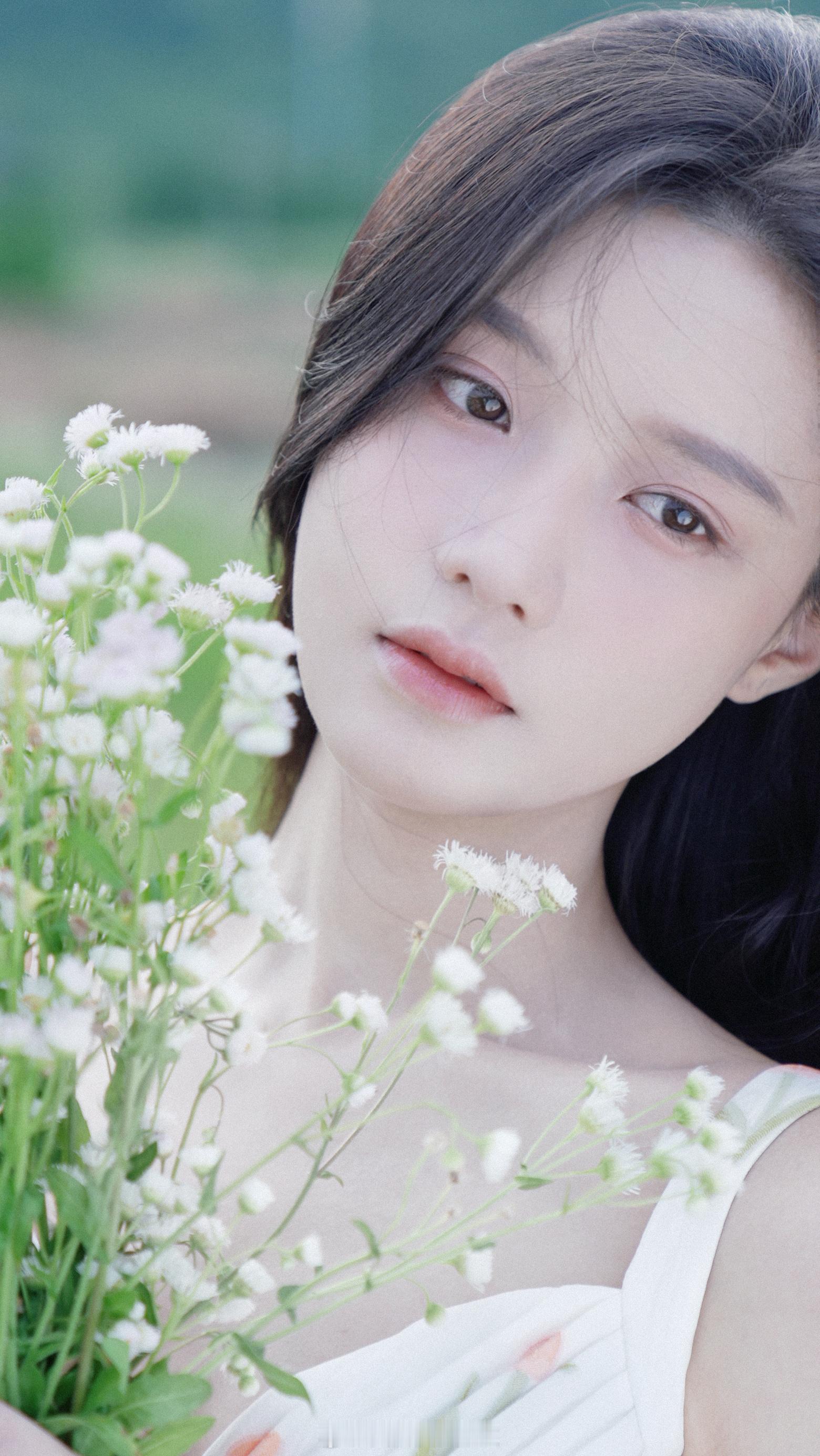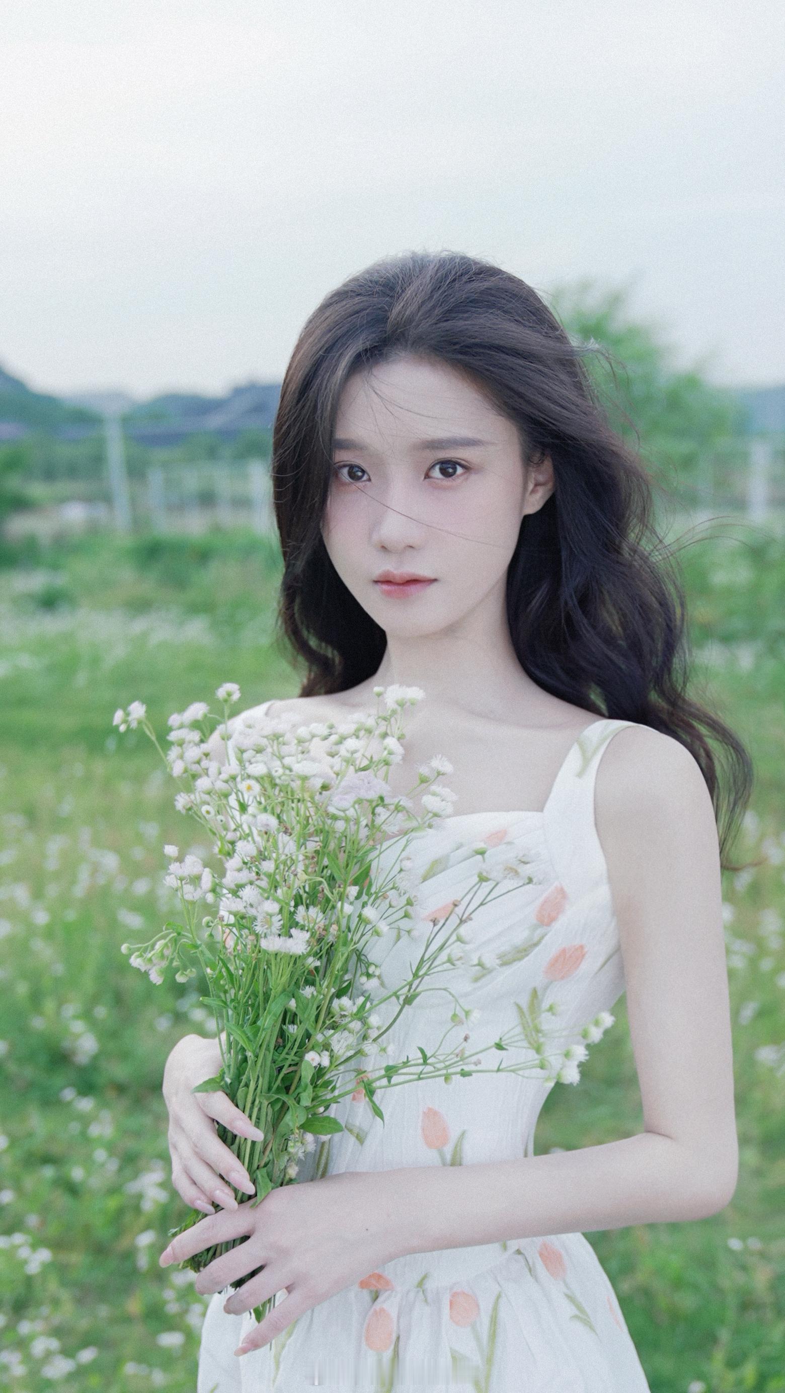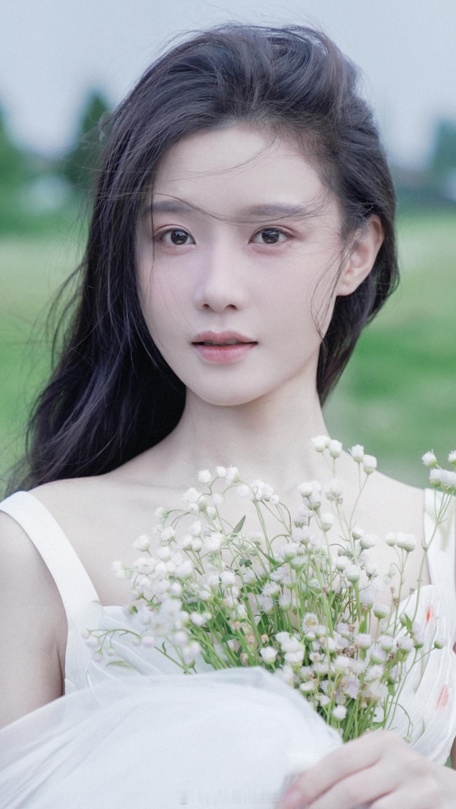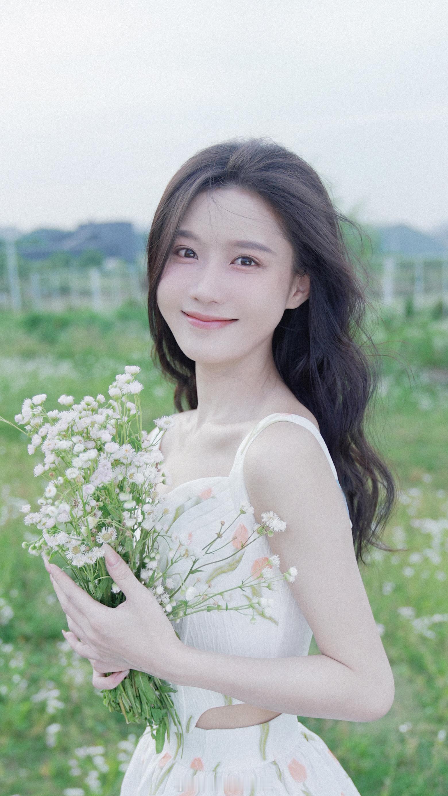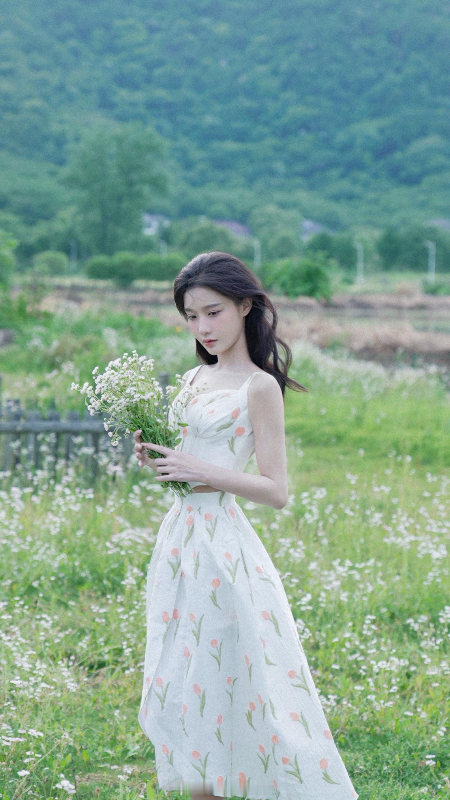 陈意涵白色吊带鲜花少女裙