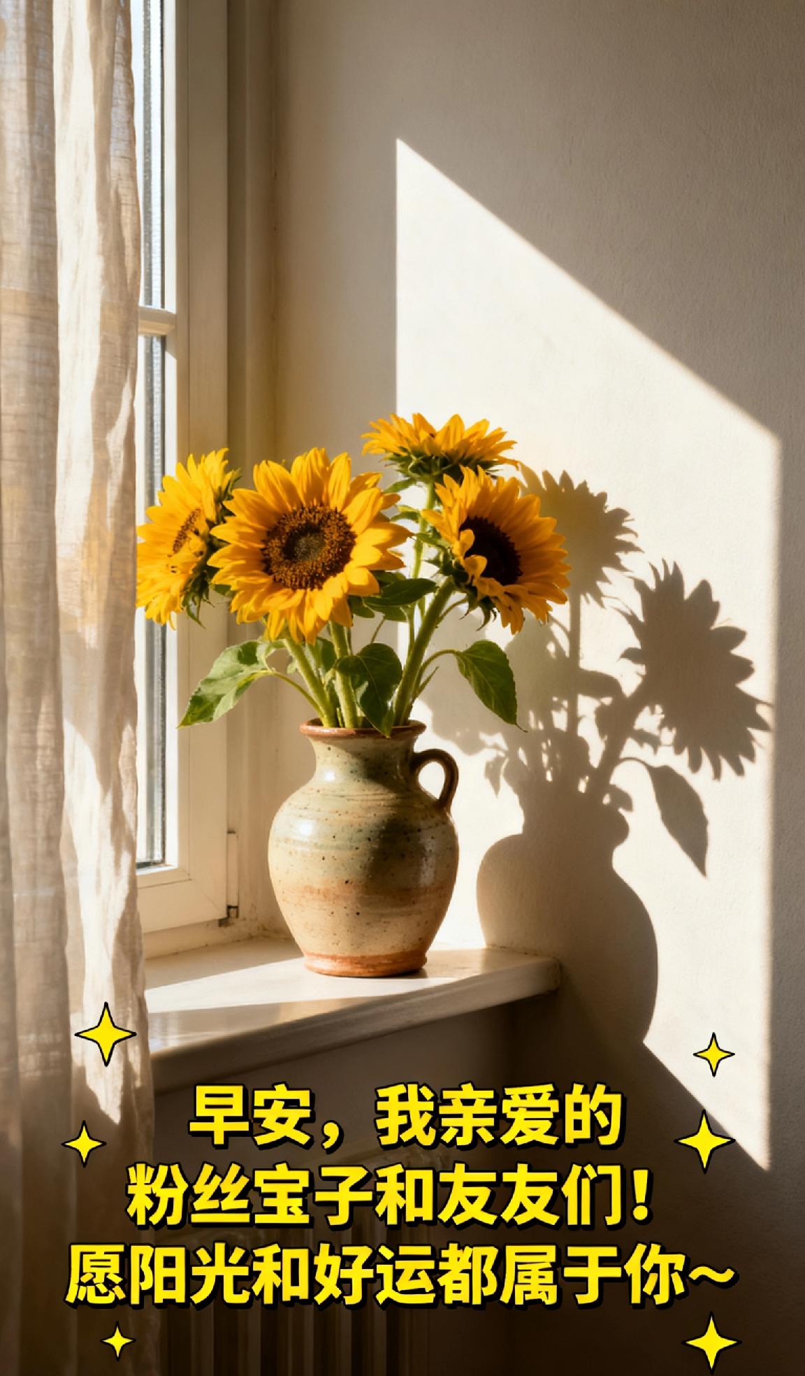醒来就想跟我的粉丝宝子和友友们说声早安呀!谢谢你们一直以来的陪伴与支持,像小太阳一样温暖着我~ 愿你们今天也能被好运包围,工作顺心、生活舒心,每一刻都满是欢喜!新的一天,我们继续一起奔赴美好呀☀️ 早安问候☀️ 粉丝陪伴💖 好运常在🌞 生活舒心✨