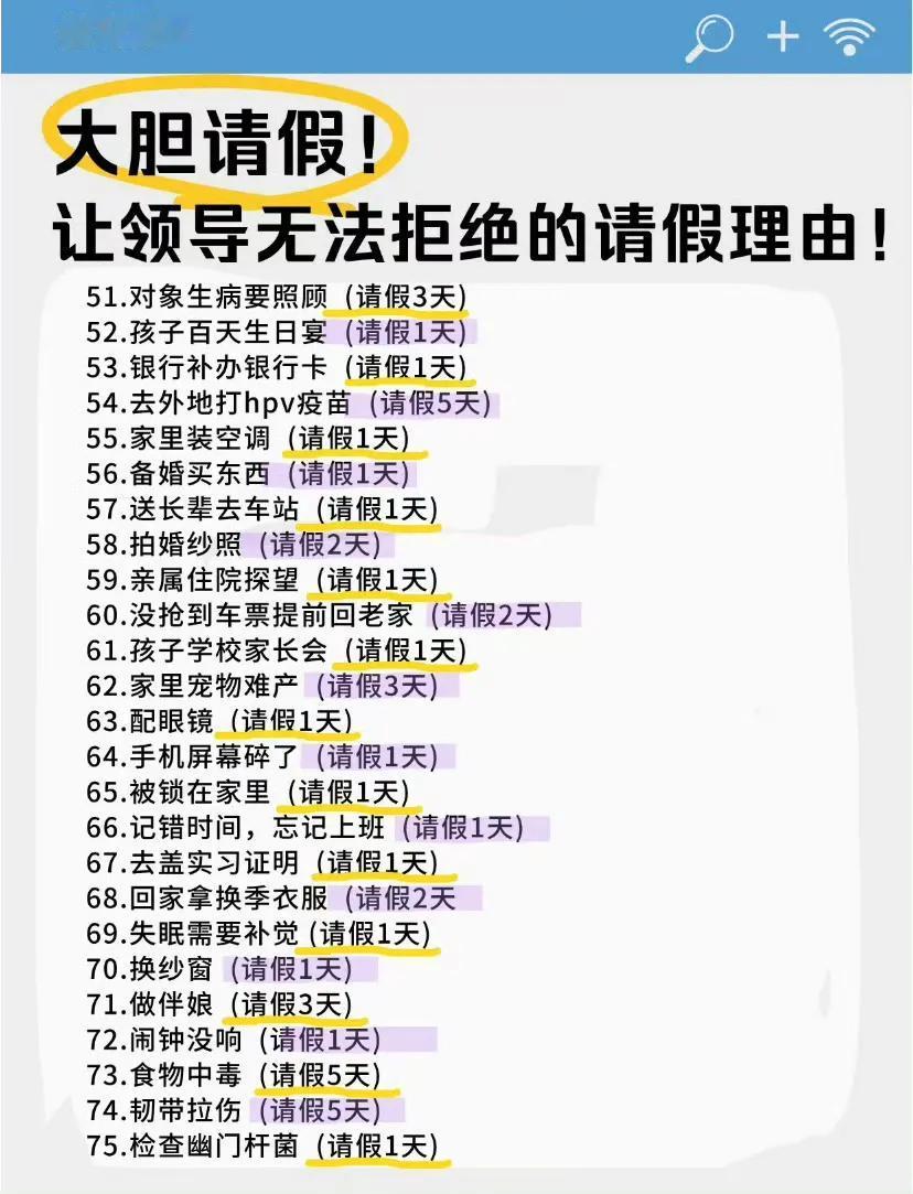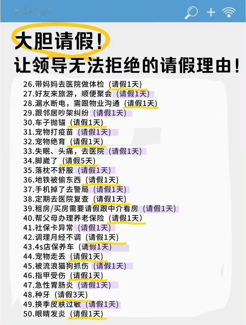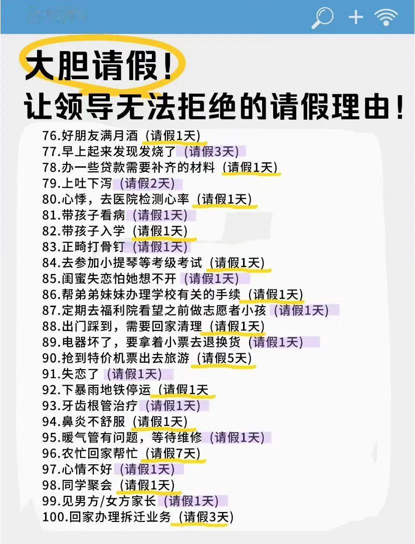 大胆请假, 以下是让领导无法拒绝的理由, 可以补充……