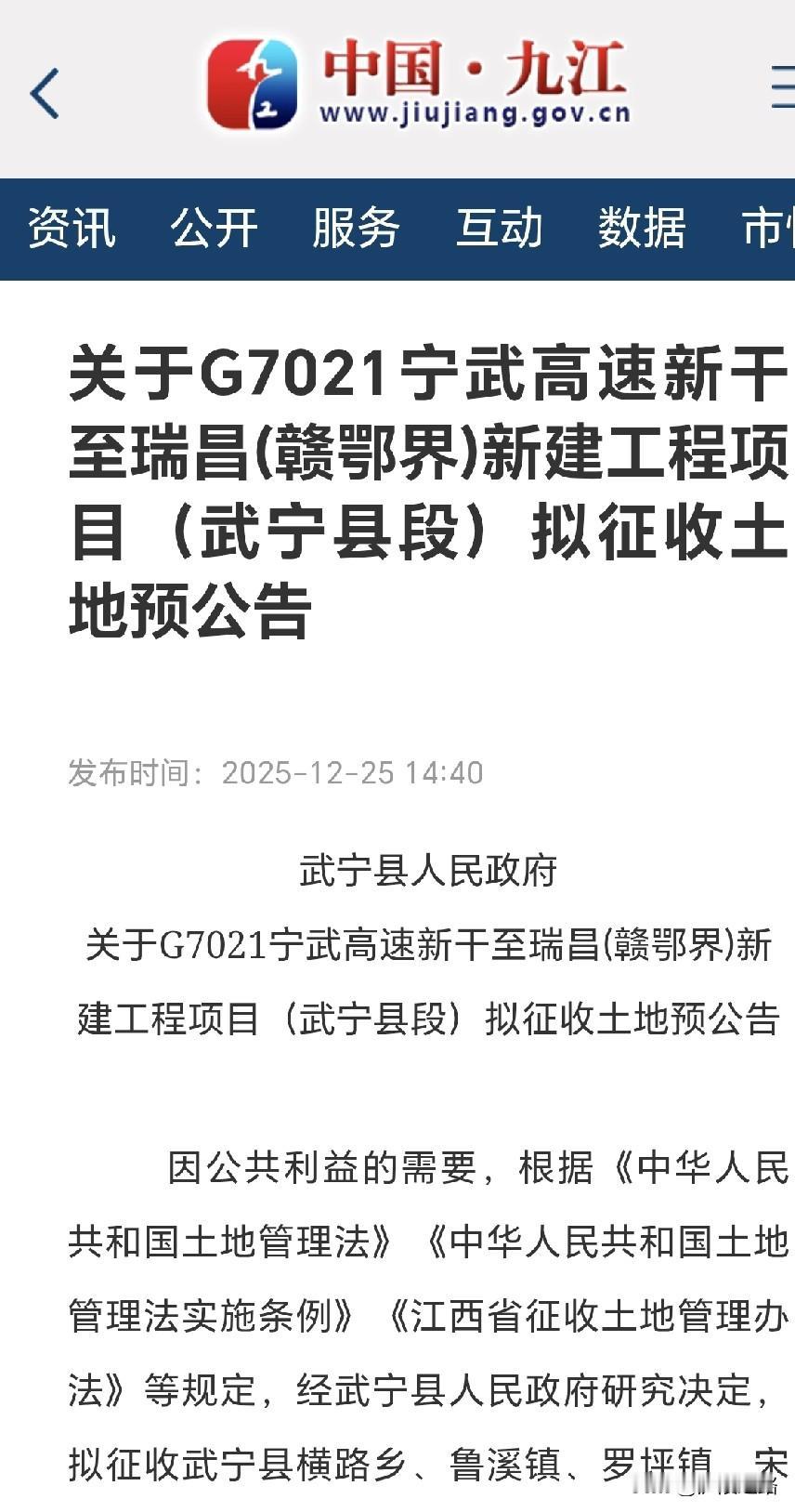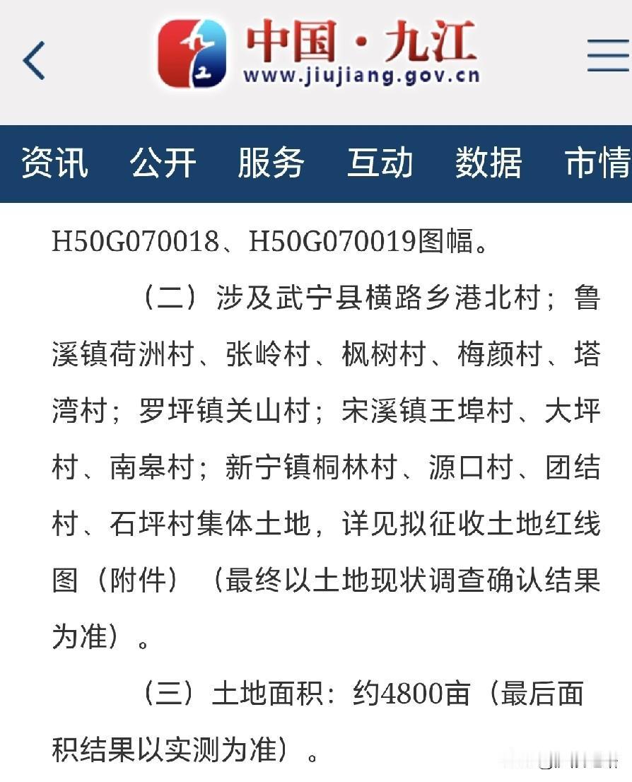 好消息!江西武宁县即将新增2个高速出入口、一个服务区以及一个枢纽互通。 近日,江西武宁县拟征收4800亩土地,新干至瑞昌高速公路已确定在武宁县境内设立如下设施: 1.武宁东互通:位于新宁镇九头村附近一带,出入口在桐林村连接省道305。 2.鲁溪互通:位于枫树村委夏河背后山上一带,出入口在邓山村附近连接国道316。 3.武宁北枢纽:位于宋溪镇王埠村虎山一带,与永武高速公路实现互通。 4.武宁北服务区:位于宋溪镇大坪村西部湖边一带。 关于G7021宁武高速新干至瑞昌(赣鄂界)新建工程项目(武宁县段)拟征收土地预公告,拟征收武宁县横路乡、鲁溪镇、罗坪镇、宋溪镇、新宁镇范围内的集体土地。具体事项预公告如下: (二)涉及武宁县横路乡港北村;鲁溪镇荷洲村、张岭村、枫树村、梅颜村、塔湾村;罗坪镇关山村;宋溪镇王埠村、大坪村、南皋村;新宁镇桐林村、源口村、团结村、石坪村集体土地,详见拟征收土地红线图(附件)(最终以土地现状调查确认结果为准)。 (三)土地面积:约4800亩(最后面积结果以实测为准)。
