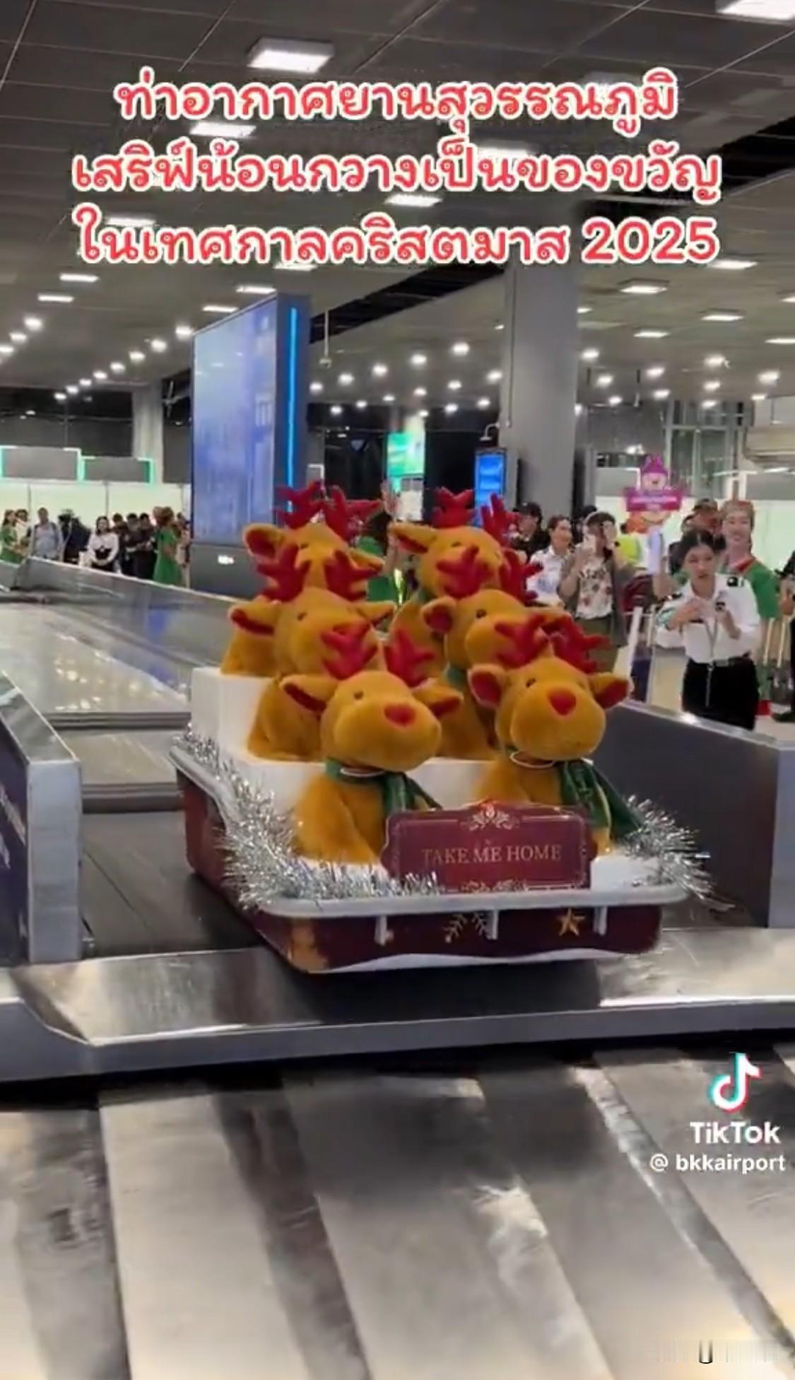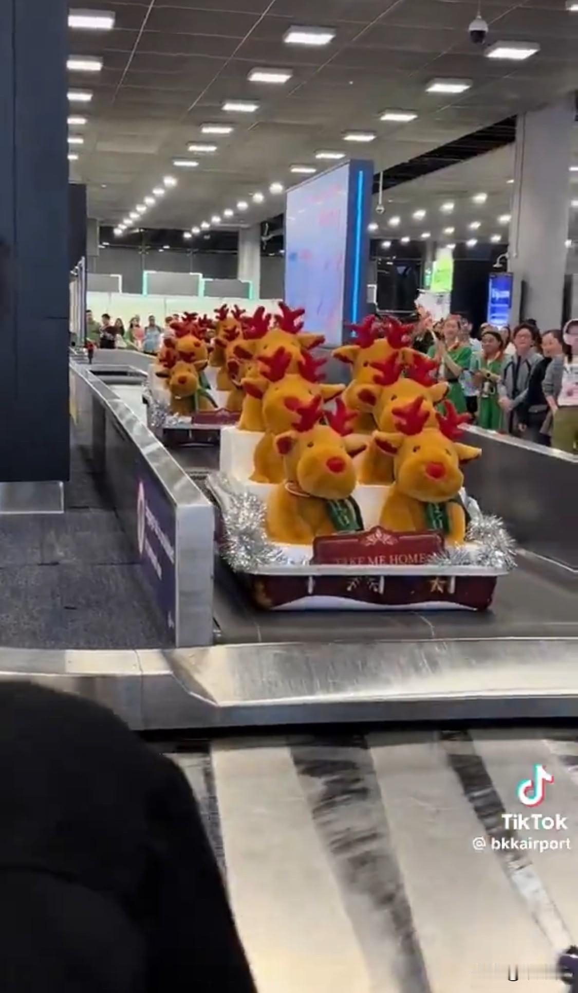曼谷机场向乘客赠送毛绒驯鹿。如此简单却又巧妙的方式提升了旅客的旅行心情。