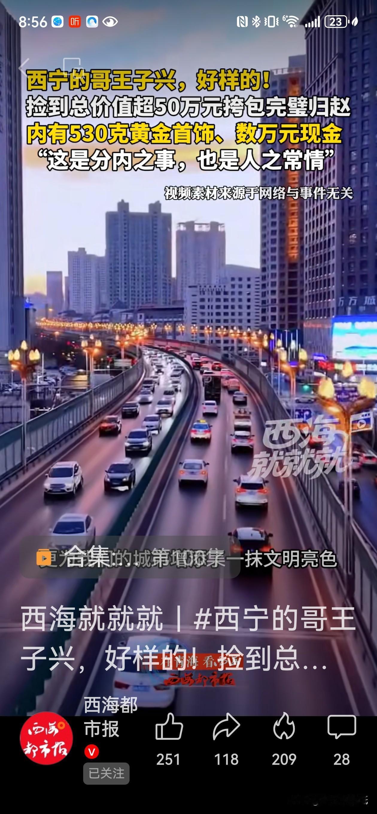 看看,西宁出租车司机王子兴干的这事… 深夜十点多,西宁的街头寒意已浓。青AD64056出租车司机王子兴刚送完两位乘客,开出近两公里等红灯时,听到后座有动静。回头一瞧,一个深色挎包静静地躺在座位上。 “坏了,肯定是刚才那对男女落下的。”王子兴心里一紧,赶紧靠边停车。他试着通过微信支付的留言功能联系对方,发去自己的电话。不到一分钟,电话就响了,那头传来失主邢先生焦急的声音。 王子兴二话没说,调转车头就往回赶。为了让失主彻底放心,他特意请两人上车,当着他们的面清点。包一打开,所有人都愣住了——里面是黄澄澄的530克黄金首饰和一沓沓现金,总价值超过50万元!邢先生和女友当时加工完黄金,正准备去吃饭,没想到把“身家”都落在了车上。直到这时,王子兴才知道自己捡到的是什么。 “这是我应该做的,也是人之常情。”面对感激,这位开了十余年出租车的老司机、退伍军人,只是朴实地说出了这句话。事后,邢先生专门送上锦旗,感谢这位好人。 其实,王子兴不是个例。就在几个月前,西宁另一位“的哥”马豪鹏也将乘客遗忘的21万元现金完璧归赵。他们每天穿梭在大街小巷,用最朴实的行动,擦亮着城市的名片,守护着人心的温度。为这样的西宁好司机,点赞! 西宁的哥王子兴 西宁出租车