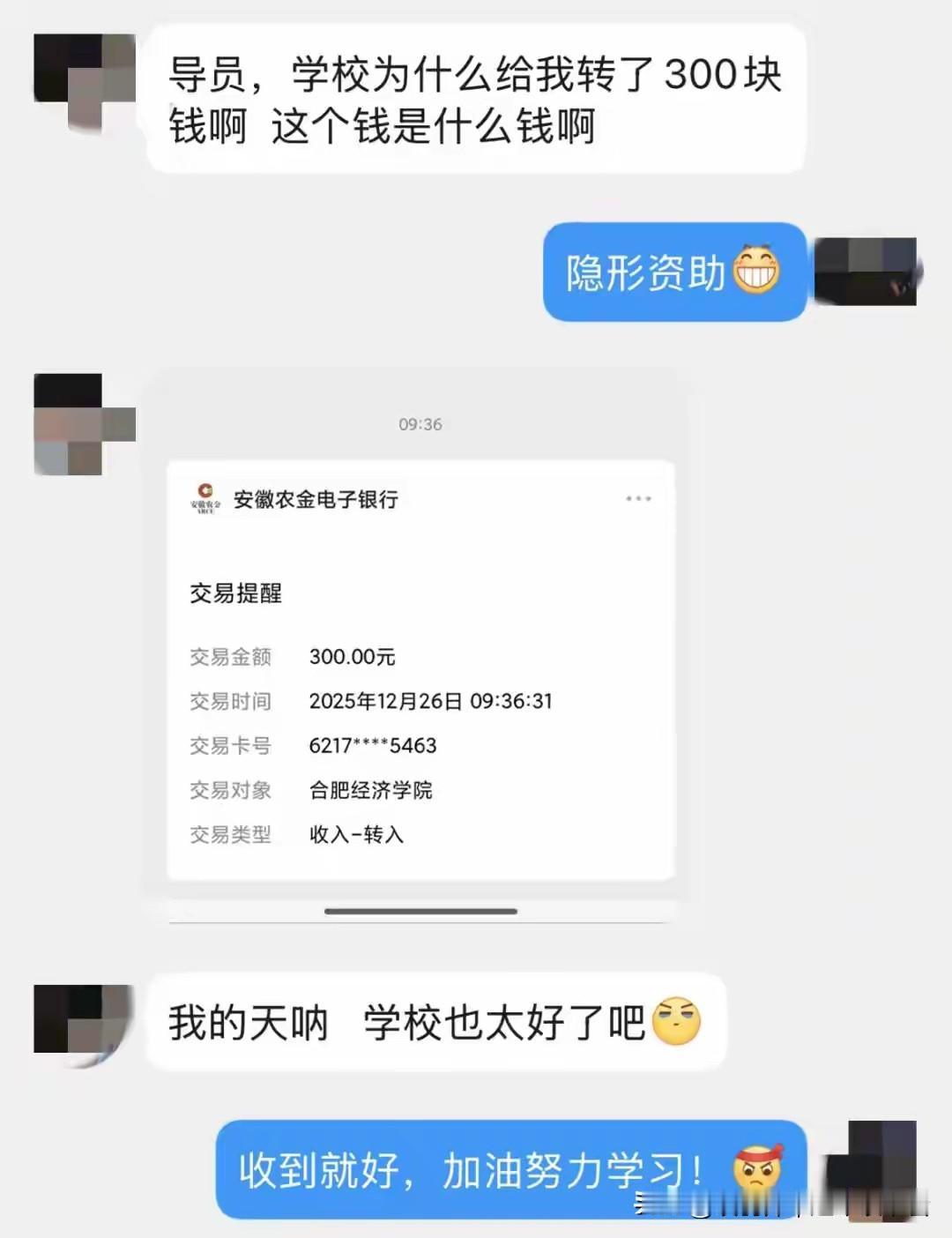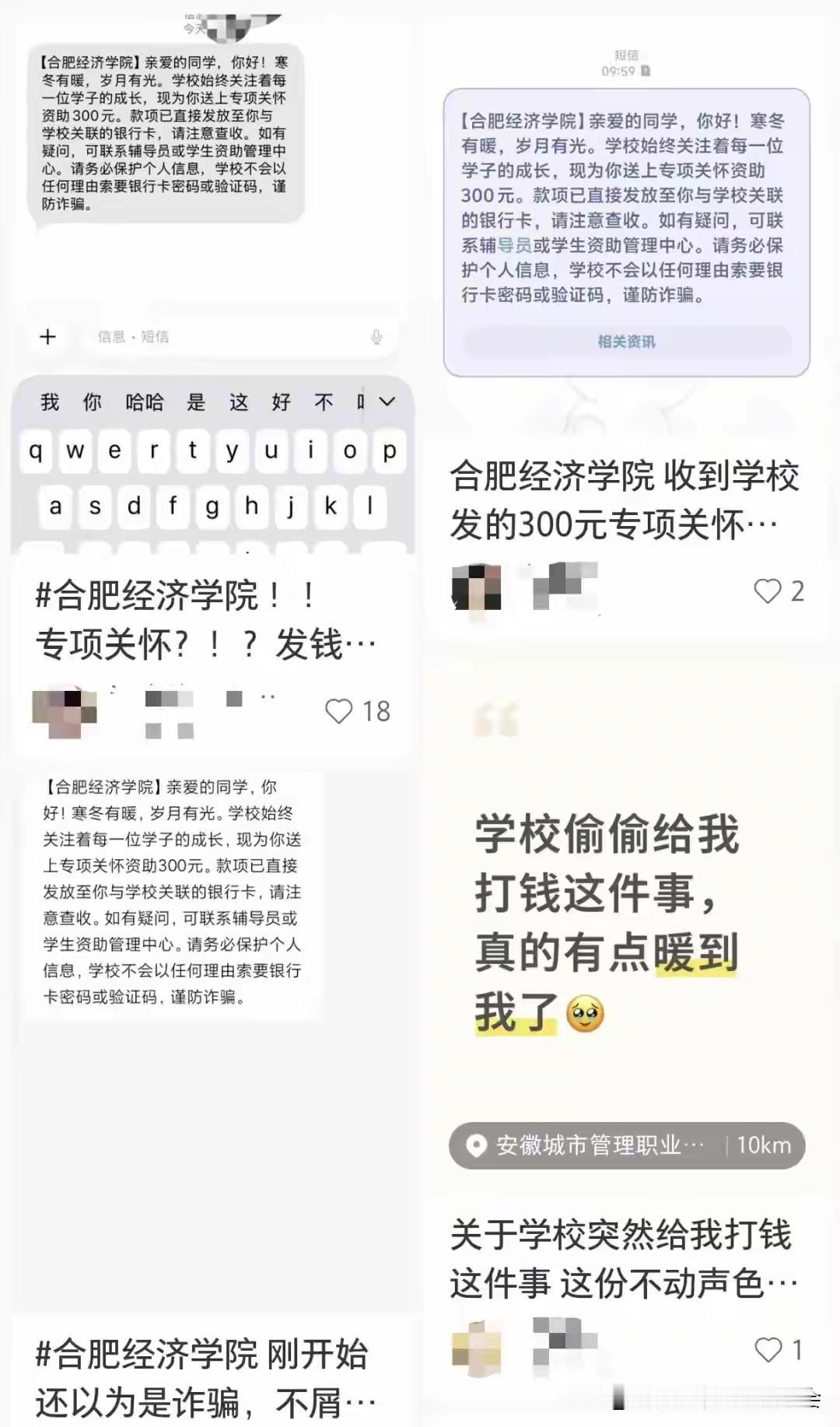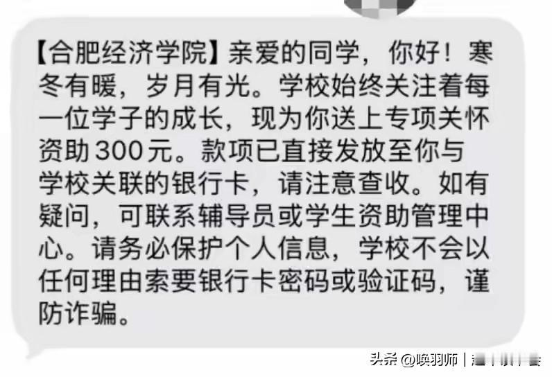 合肥一高校悄悄给学生打钱 合肥一高校悄然向4000余名学生账户打入300元“隐形资助”,引发热议。此举一改传统“自证贫困”的申请模式,依托校园消费大数据分析,精准识别困难学生,实现了从“被动审核”到“主动发现”的转变。 这不仅是技术的应用,更是理念的升级。它保护了学生尊严,解决了季节性、临时性生活压力,与国家主渠道资助形成有效互补。其成功揭示了未来学生资助体系的趋势:利用数据智能,实现更人性化、无标签化的精准关怀。 推广面临数据能力、隐私保护等挑战,但方向已明:构建“数据驱动、人机协同”的智慧资助体系。教育的最高温度,莫过于此——看见需求,默默伸手,温柔托举每一个梦想。助资贫困生 校园捐款 大学捐款 隐形贫困生 学术资助计划 学生资助 地方高校资金 隐形资助 大公司资助学校,真的出于善心吗? 大学入学资助 安徽奖学金 安徽大学助学 安徽助学点 潮实奖学金 校园基金 高校报账