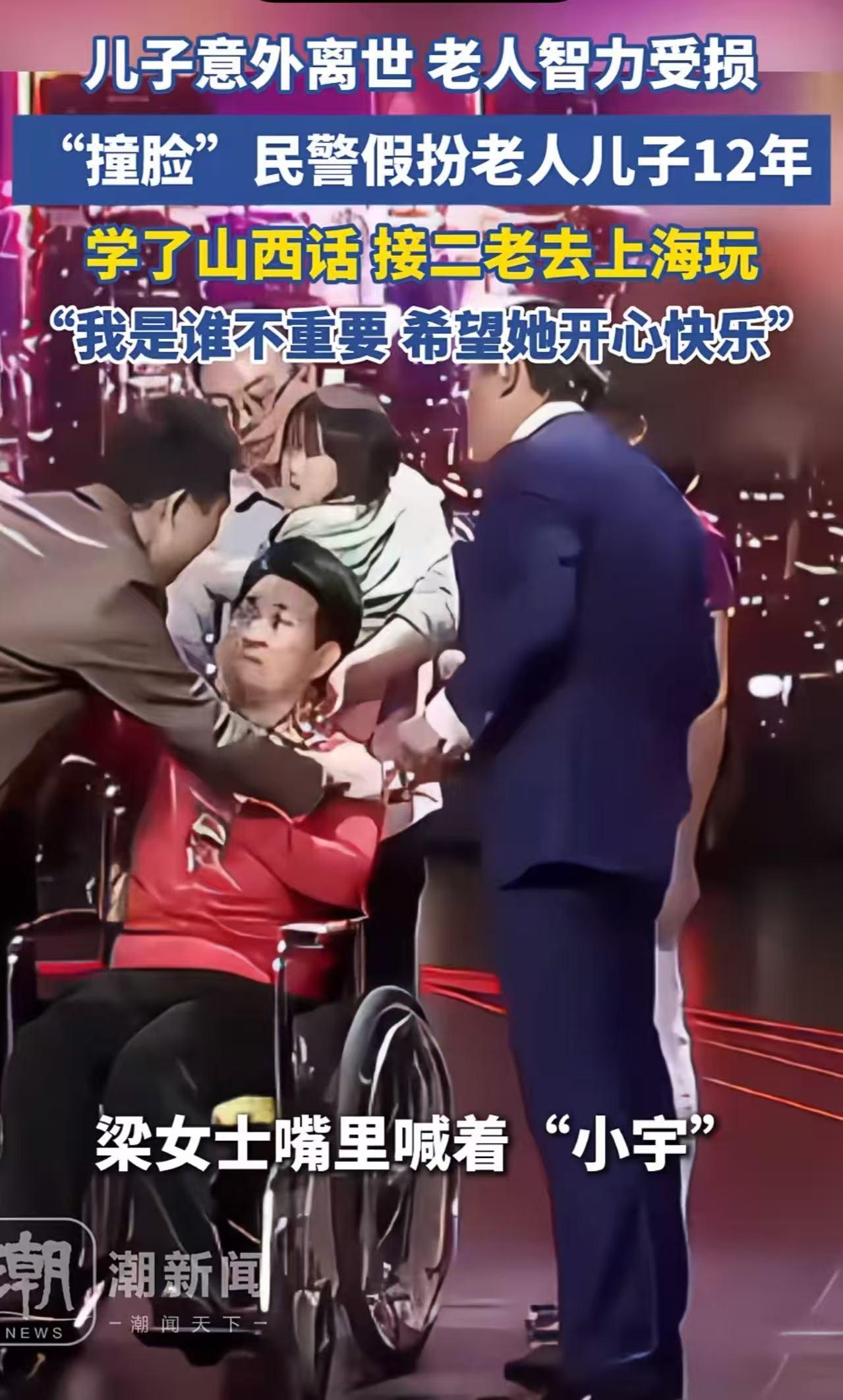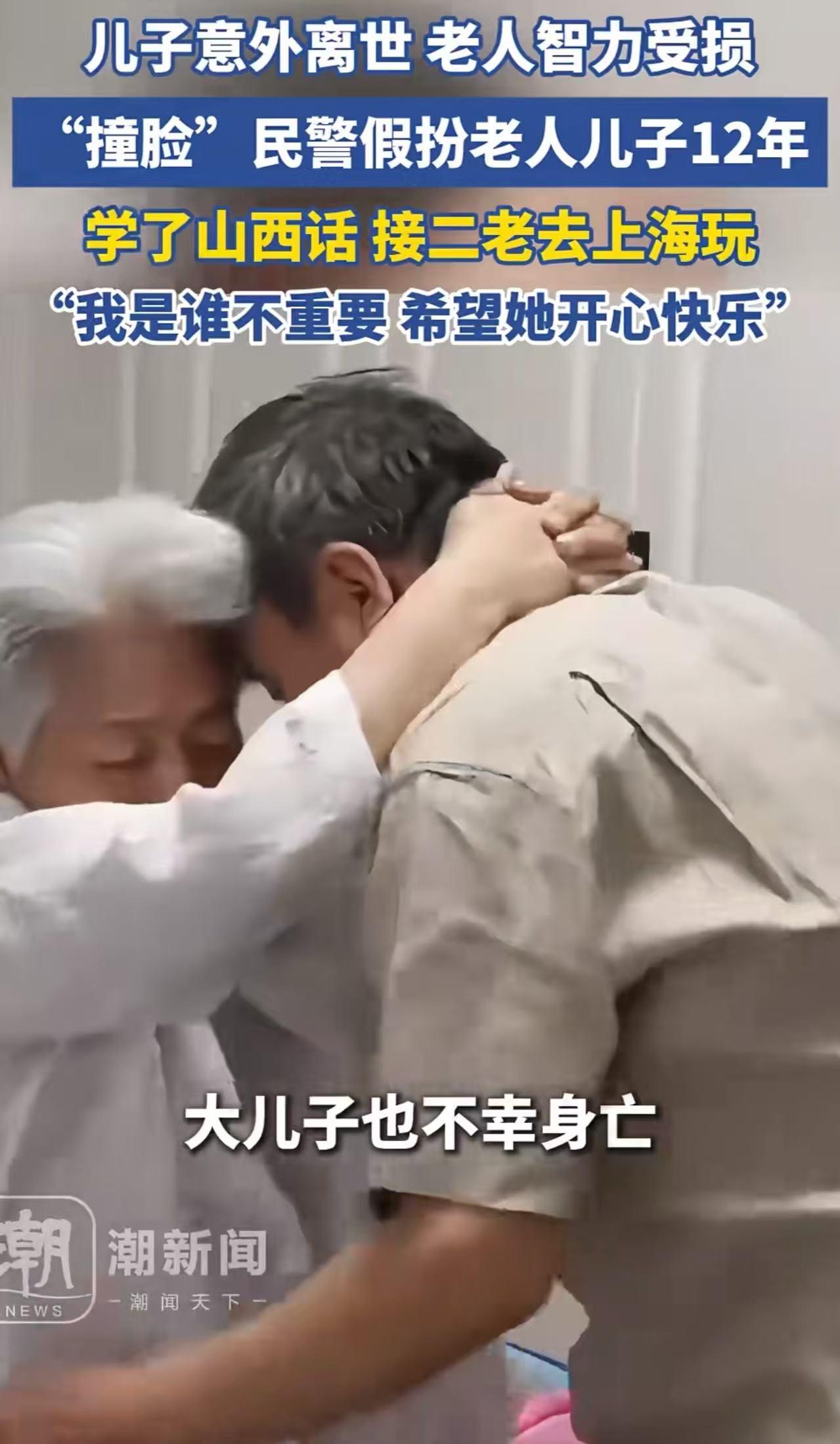 上海的一位民警,竟假扮山西夫妇去世的儿子长达12年之久,这背后的真相令人泪目! 时间回溯到2003年,大伯家中遭遇了一场突如其来的灾难,妻子杨女士因煤气中毒,生命垂危。尽管经过全力抢救,杨女士还是不幸成了植物人。 而更让这个家庭雪上加霜的是,他们的大儿子也在这场变故中不幸身亡。原本幸福美满的家庭,瞬间支离破碎,夏大伯陷入了无尽的悲痛与绝望之中。 也许是上天怜悯这个可怜的家庭,经过一段时间的治疗,杨女士奇迹般地苏醒了过来。然而,命运似乎并没有打算放过这个家庭,苏醒后的杨女士,智力却退回到了五六岁孩童的水平。 她虽然记不清很多事情,但心里却始终牵挂着自己的儿子小宇,嘴里总是念叨着小宇的名字,仿佛那是她生活里唯一的寄托。 时间来到2010年,一次偶然的机会,夏大伯在电视上看到了民警姜经纬。发现姜经纬的长相,和自己已经离世的儿子小宇极为相似! 夏大伯觉得这就是上天派来安慰他们夫妻俩的。于是,夏大伯怀着忐忑又期待的心情,联系上了姜经纬,希望他能帮忙,让妻子再见一次“小宇”,哪怕只是远远地看一眼,也能让妻子得到一些慰藉。 姜经纬在得知这个请求后,内心被深深触动了。他征得了自己父母的同意后,果断赴约。 当他出现在杨女士面前时,奇迹发生了。杨女士一眼就认出了他,嘴里激动地喊着“小宇”,泪水止不住地流了下来。 那一刻,姜经纬感受到了这份沉甸甸的母爱,也更加坚定了自己要为这个家庭做些什么的决心。 从那天起,姜经纬便有了另一个身份——山西夫妇的儿子“小宇”。在接下来的12年里,他为了更好地融入这个家庭,专门学习了山西话,仿佛真的就是小宇在和父母聊天。 他还会接二老去上海玩,带着他们游览上海的各个景点,品尝上海的美食。在这个过程中,他耐心地听着杨女士一遍又一遍地叫着“小宇”,每一次回应都充满了温柔和关爱。 姜经纬曾深情地说:“到现在这个地步,我是不是小宇其实已经没那么重要了,其实就是祝愿他们能够一直这样开开心心,快快乐乐的生活下去。” 这句话,没有华丽的辞藻,却饱含着最真挚的情感,让人感受到他内心的善良和无私。 姜经纬用12年的坚守和付出,诠释了什么是真正的善良和大爱。他就像一束温暖的光,照亮了夏大伯夫妇黑暗的生活,让他们重新感受到了亲情的温暖和生活的希望。 他不是亲生儿子,却胜似亲生儿子,这份超越血缘的亲情,让人动容。我们不禁要为姜经纬点赞,他是一位当之无愧的好民警,更是我们这个时代最可爱的人!