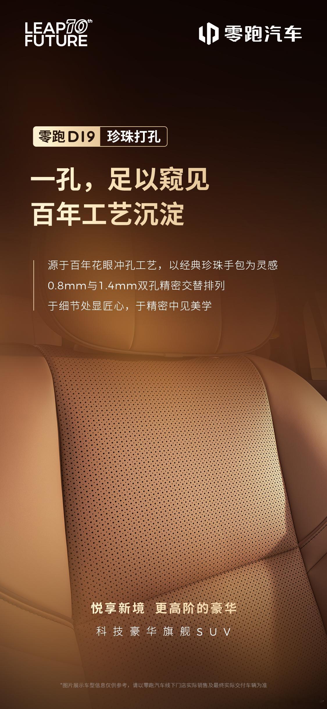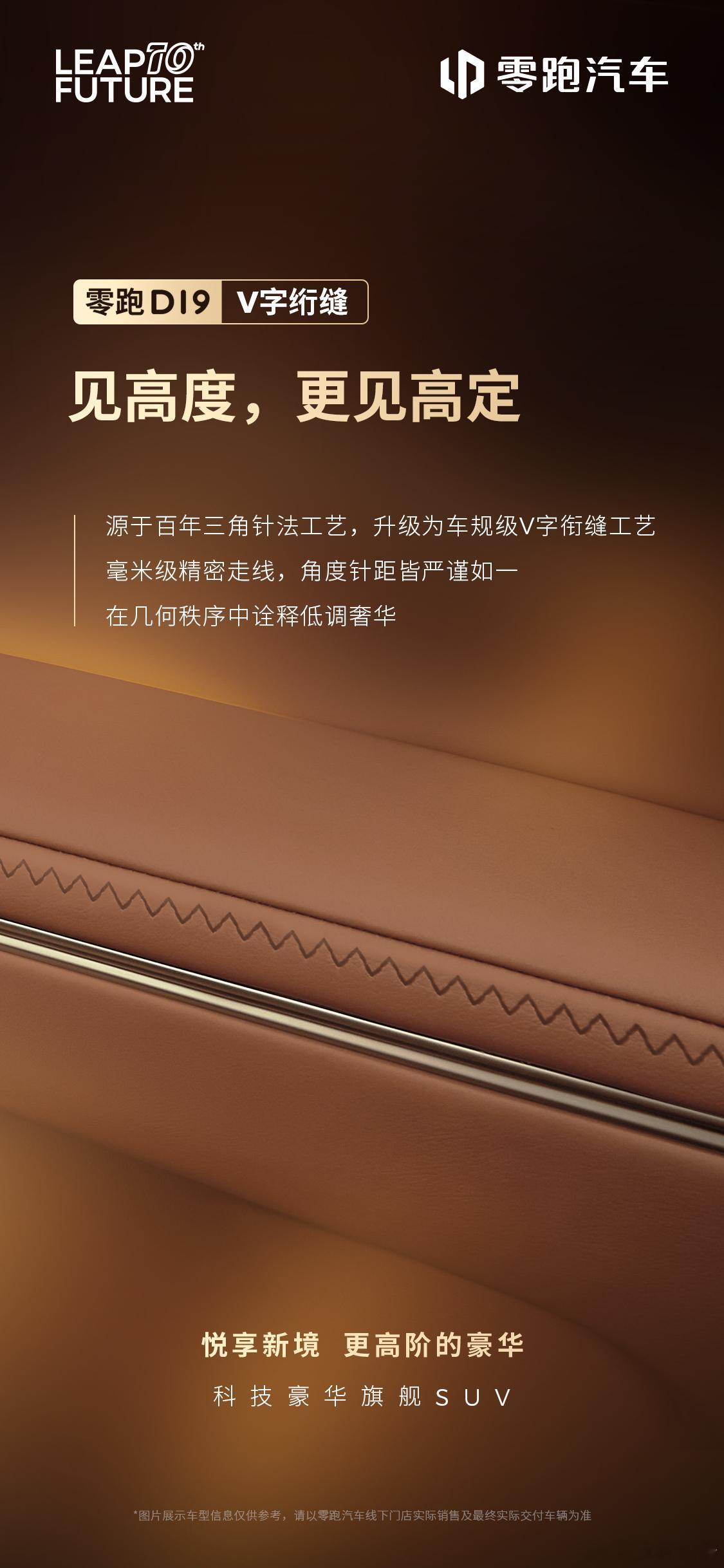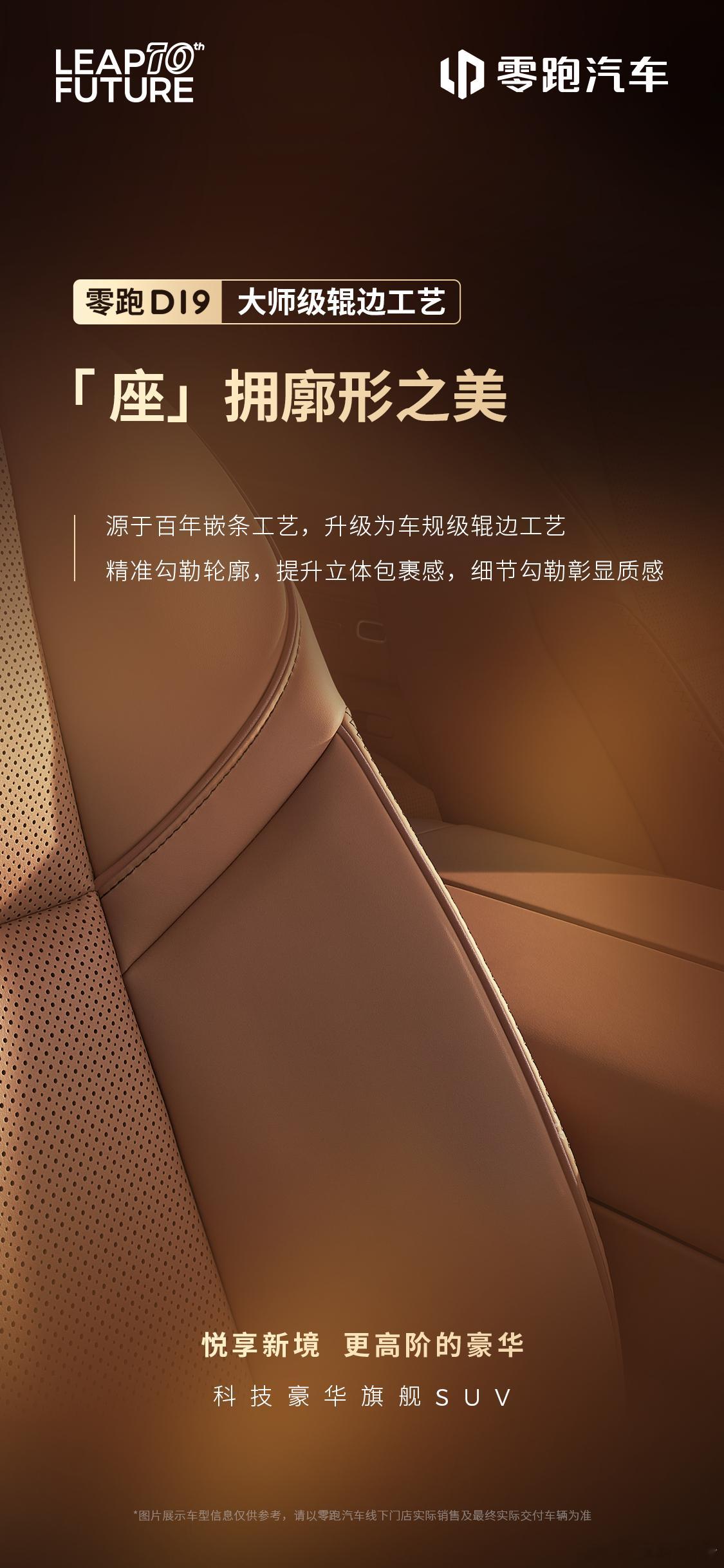 零跑D19内饰公布零跑D19作为品牌冲高的全尺寸豪华SUV,25-30万级定价极具竞争力,目前999元盲订火热进行中,可锁定优先提车、购车优惠等专属权益。新车以5.25米车长、3120mm轴距打造宽敞空间,提供2+2+2/2+3+2两种布局,第三排可舒适容纳1.8米乘员。内饰搭载无铬鞣半苯胺头层真皮座椅,配V字绗缝、珍珠打孔等精致工艺,叠加“森野氧舱”制氧系统,兼顾豪华质感与健康体验。动力上提供纯电、增程双选择,纯电版1000V高压平台续航720公里,增程版纯电续航超500公里,综合续航破1500公里。智能与性能拉满,双高通骁龙8797芯片+高阶智驾系统,标配双腔空悬与CDC减震,零百加速4.8秒。其以“产品豪华、价格不豪华”的定位,精准契合务实中产需求,凭借空间、配置、动力的全方位优势,重塑细分市场价值标准。汽场全开零跑D19零跑汽车十周年零跑10年向上领跑零跑汽车