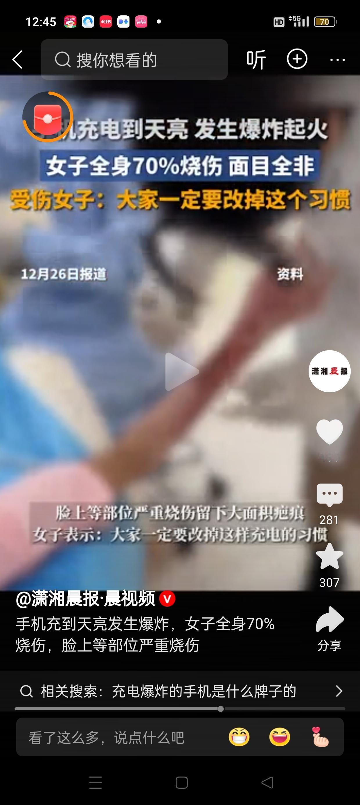 【女子手机充电到天亮爆炸,全身烧伤70%!生命濒临危机,安全警钟再次敲响!】 近日,一起令人震惊的事故引发了广泛关注:一名年轻女子在夜间充电时,手机突然爆炸,导致她全身70%的皮肤严重烧伤,生命垂危。这起事件再次提醒我们,日常生活中的小细节也可能隐藏巨大风险,安全防范刻不容缓。 事件回顾: 事情发生在一个普通的夜晚,这名女子为手机充电准备休息。然而,她没有意识到充电环境的隐患。手机在夜间静静地充电,突然爆炸,火光冲天,浓烟弥漫。救援人员赶到时,女子已经被严重烧伤,伤势极为危急。经医生诊断,她的皮肤烧伤面积达70%,生命垂危,需进行紧急救治。 爆炸原因: 初步调查显示,事故可能与使用非原装或劣质充电器有关。低质量的充电设备容易过热、短路,甚至引发爆炸。此外,夜间充电时,手机被放在被褥或床单上,也极大增加了火灾风险。专家提醒:任何充电设备都应使用正规品牌、经过安全认证的产品,避免在睡觉时充电,尤其是在床上或易燃物附近。 安全提醒: 使用正规充电器:只购买有质量保障的原装或经过认证的充电设备。 避免夜间充电:睡觉时不要充电,尤其是在床上或被褥中。 不要覆盖充电设备:确保手机和充电器在通风、远离易燃物的环境中充电。 定期检查设备:避免使用损坏或过热的充电器和线缆。 关注手机状态:充电时避免操作或移动手机,减少意外发生。 生命的宝贵: 这起事故再次敲响了安全警钟。手机已成为我们生活的必需品,但其安全使用同样重要。任何忽视安全的行为都可能带来无法挽回的后果。希望所有人都能引以为戒,增强安全意识,守护自己和家人的生命安全。 结语: 科技带来便利的同时,也伴随着风险。我们应当时刻警惕,正确使用电子设备,杜绝侥幸心理。愿这起悲剧成为警示,让每个人都能在日常生活中多一份安全意识,远离危险,珍惜生命。