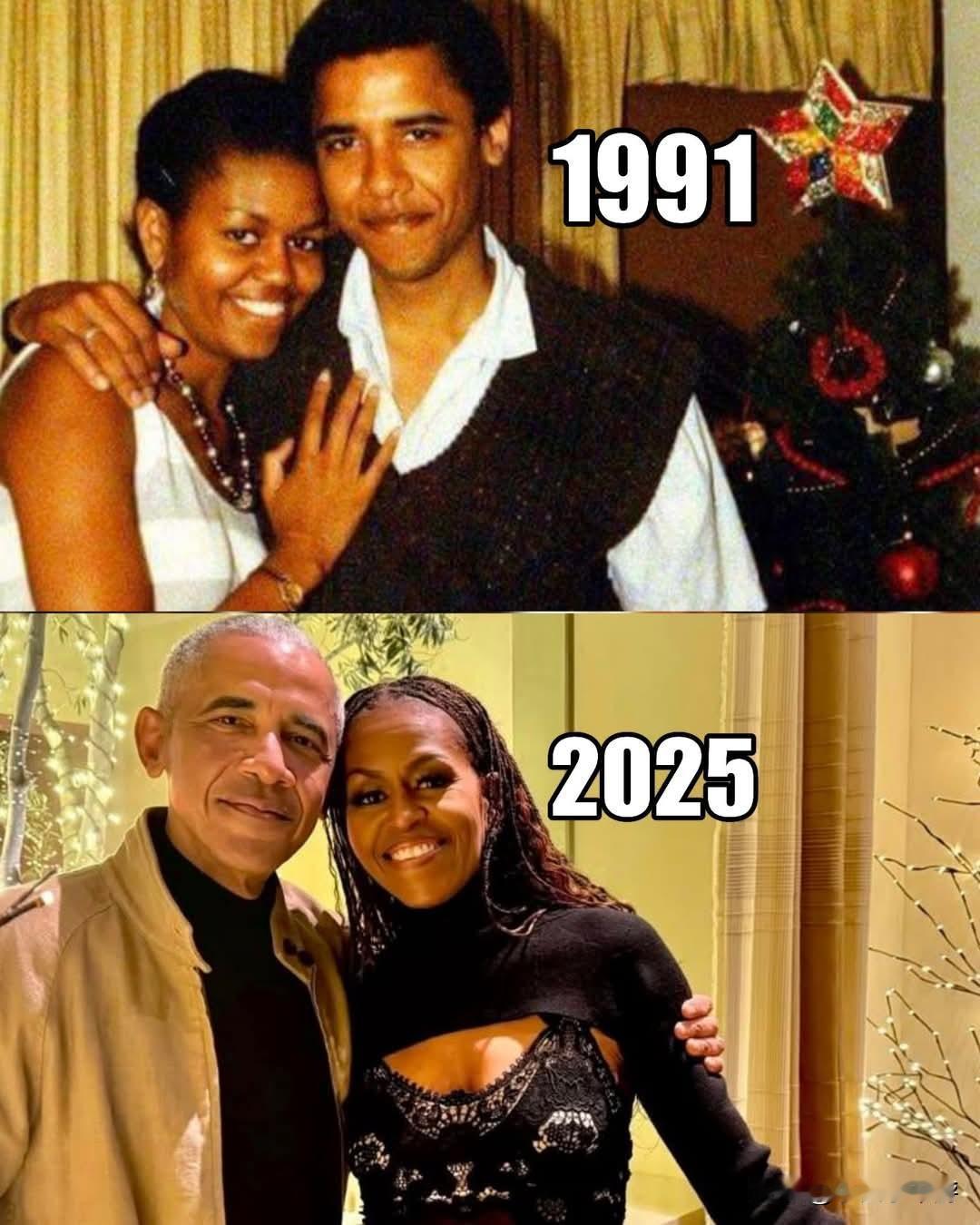 美国前总统奥巴马与妻子米歇尔以前和现在