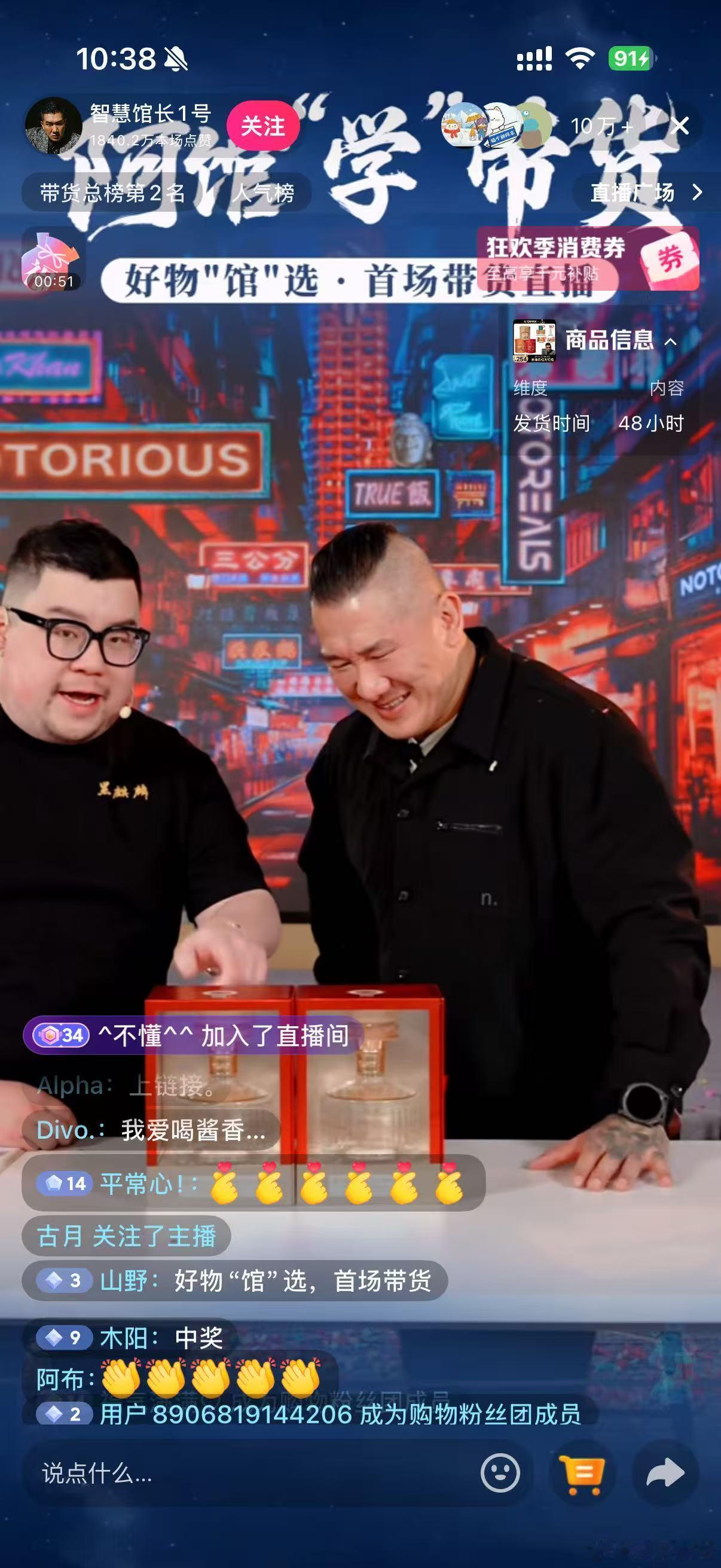 今天,馆长开播人气爆棚,在线人数一直保持十万+,直冲带货榜第二名,只输给了与辉同
