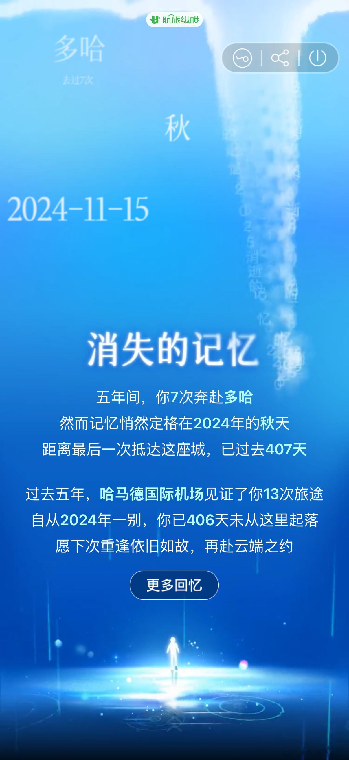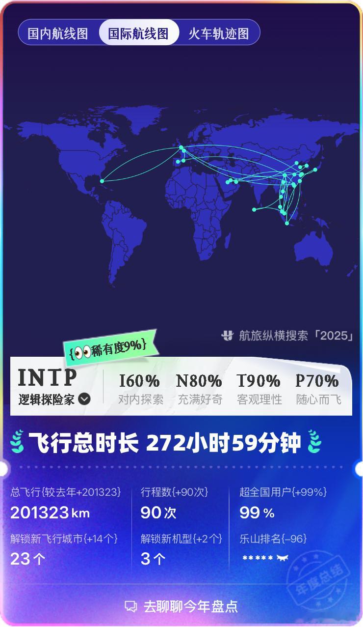 航旅年度飞行报告来了,100%不托运确实符合我的作风,首先出门带的东西就很少,也不喜欢下了飞机还等行李,座位是有走道绝不坐靠窗,里面进出太不方便了,还容易影响别人 航旅纵横年度飞行报告