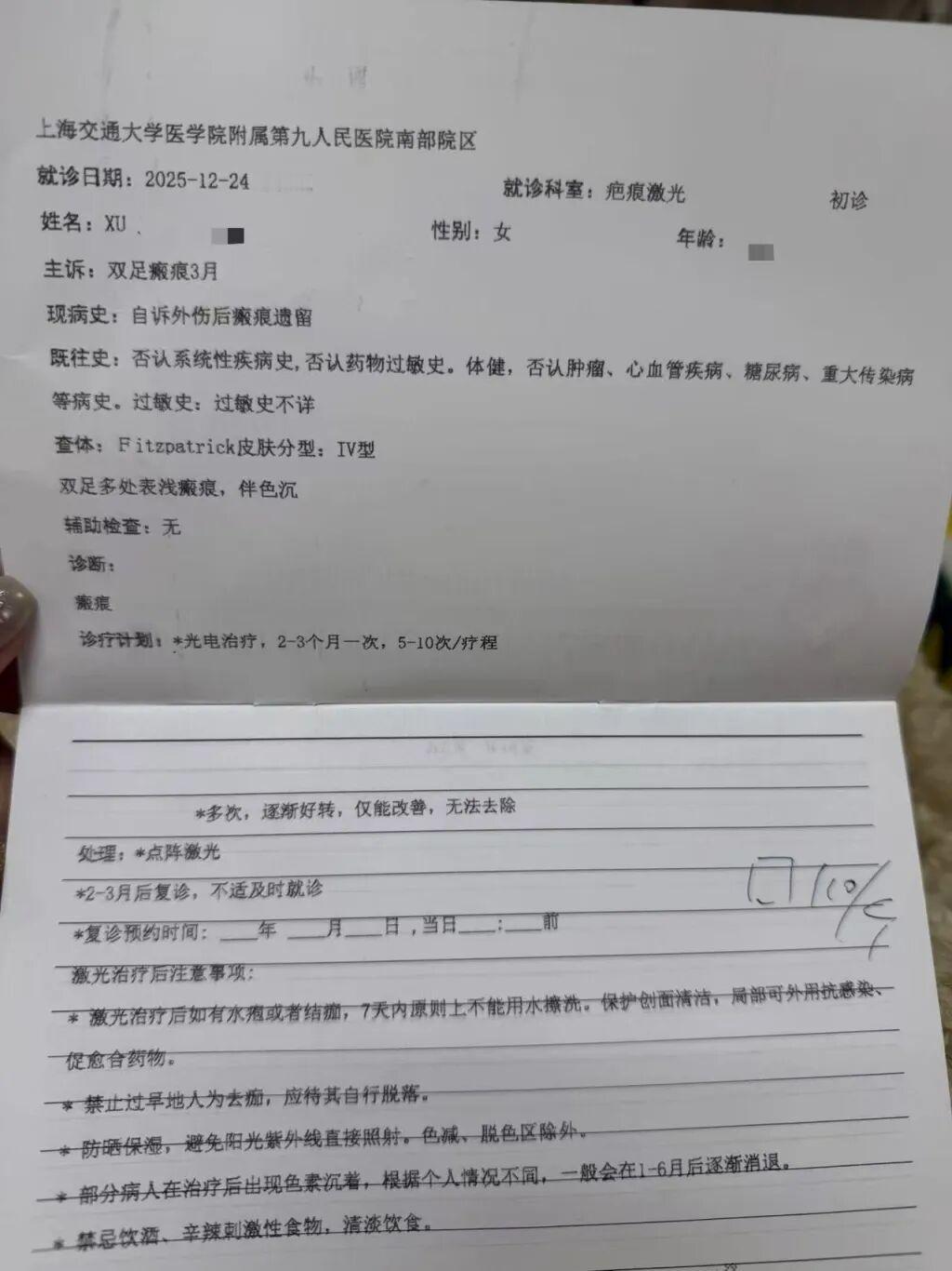 上海,女子去商场买鞋,看中了价值9250元的运动鞋,谁知,她穿着走了10分钟,双脚被磨得红肿破皮,伤口过了半个月还是没有愈合,女子返回店里要求退货,并赔偿。但商家只同意换货,拒绝赔偿,女子质疑买鞋的时候为啥不提醒穿袜子磨合一下?而店家的说法,让她更是傻眼了。事情到最后,双方都没谈拢。 花将近一万元买双鞋,究竟是为了走路生风,还是为了“步步惊心”?对于上海的徐女士来说,这笔高达9250元的消费,换来的不是奢侈品的享受,而是一场长达数月的噩梦和可能伴随终身的伤疤。 徐女士仅穿着这双新鞋出门踱步十分钟,双脚便厄运临头。新鞋似无情枷锁,让她举步维艰,双脚备受折磨。脚背皮肤被严重磨破,不仅红肿发炎,甚至在停穿半个多月后,伤口依然难以愈合。 等到10月22日,徐女士不得不赶往医院求助,而在辗转了中山医院和上海交通大学医学院附属第九人民医院后,医生的诊断更是给了她当头一棒:由于伤口愈合不良形成了色素沉着和瘢痕,想复原恐怕得动用整形手段。诊疗单上冷冰冰地写着光电治疗的方案,几个月一次的疗程,哪怕费时费力,医生也直言这些疤痕“很难完全去掉”。 这一切的源头,仅仅是那双带着可爱猫咪形象的LV露跟运动鞋。回溯9月20日那个意气的午后,徐女士途经上海前滩太古里的LV门店,销售人员一句“全上海最后一款”,如重锤般精准击中了她的心弦,令她瞬间心动。 这双“限定款”不仅版型百搭,当时试穿的几步路也让人觉得脚感尚可。谁能想到,这所谓的“舒适”,保质期竟然只有试穿的那几分钟?到了9月27日真正落地行走时,它立刻露出了狰狞的面目,如同刑具一般狠狠“咬”伤了主人的脚。 更让徐女士感到荒谬的,是品牌方事后的解释。当她忍着疼痛找回门店,质疑为何当初没有任何磨脚风险的提示时,得到的反馈足以让人大跌眼镜。销售人员于微信中轻描淡写告知,此款鞋边缘为皮质封边,材质偏硬。 建议徐女士先着袜磨合一段时日,亦可借助吹风机吹拂或涂抹护手霜,以达软化皮质之效。后来,官网客服人员亦坦言,虽品牌未作明确规定,但崭新的牛皮鞋若不搭配袜子穿着,必然会产生磨脚的情况。 然而,此般言辞于确凿事实面前,宛如纸糊之墙,处处尽显破绽,其漏洞多得几乎难以自圆其说。徐女士点开LV官网,映入眼帘的该款运动鞋模特展示图里,皆为光脚穿搭。 此鞋露跟设计本就为求清凉时尚之效,那所谓“必须穿袜子”的硬性规定,又从何谈起呢?如果是材质过硬的通病,为何在当初极力推销、劝说顾客买下“最后这双”的时候,只字不提需要磨合的风险?所谓的“标准版型”和“牛皮软度适中”,在鲜血淋漓的脚背伤口面前,显得格外讽刺。 退货之路的艰难,远比治伤更让徐女士心寒。从10月到12月,无论她怎么沟通,甚至把整形医院的诊断书拍在桌面上,商家依然死守着“底线”。直至12月10日,门店经理所给出的最终方案,仍旧是仅允许换货,坚决拒绝退款。 其给出的理由看似冠冕堂皇,竟称鞋子已被穿过,会对二次销售造成影响。这般说辞,着实难以令人信服。而在消费者权益的视角下,这里的核心分歧在于:这究竟是因个人脚型差异导致的“磨合期痛楚”,还是产品本身存在设计缺陷或质量硬伤? 商家咬定只要不是质量问题就不能退,但对于消费者而言,一双能让脚背走出整形级疤痕的鞋,若还得自证“质量缺陷”,这门槛未免太高。目前,双方仍僵持不下,徐女士的诉求很简单:退货、退款,并赔偿那一笔笔并不便宜的医疗与整形费用。 近万元的代价,买来的不仅是生理上的痛楚,更是一堂昂贵的关于奢侈品售后逻辑的现实课。看来,某些光鲜亮丽的奢侈品,或许真的只是用来供在橱窗里看的,而不是让人穿着走在路上的。