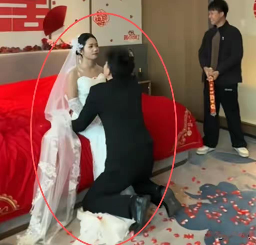 广西男子结婚接亲时竟然认错了新娘,男子兴冲冲开门接新娘,手捧鲜花越过新娘直奔伴娘去了,直到大家惊呼才奔向床上的新娘,新娘立码表情严肃不开心了,新郎马上跪在新娘前不停的道歉说自己太紧张了才导致这样的错误,并表示一定要补偿新娘的。