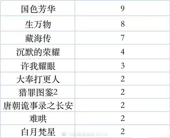 2025年年终各平台认证剧盘点汇总认证数量前三《国色芳华》《生万物》《藏海传》