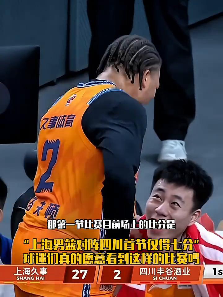 "上海男篮对阵四川首节仅得七分",球迷们真的愿意看到这样的比赛吗? 第一节比赛目前场上的比分是三十二比七,上海男篮带着25分的优势进入到第二节。