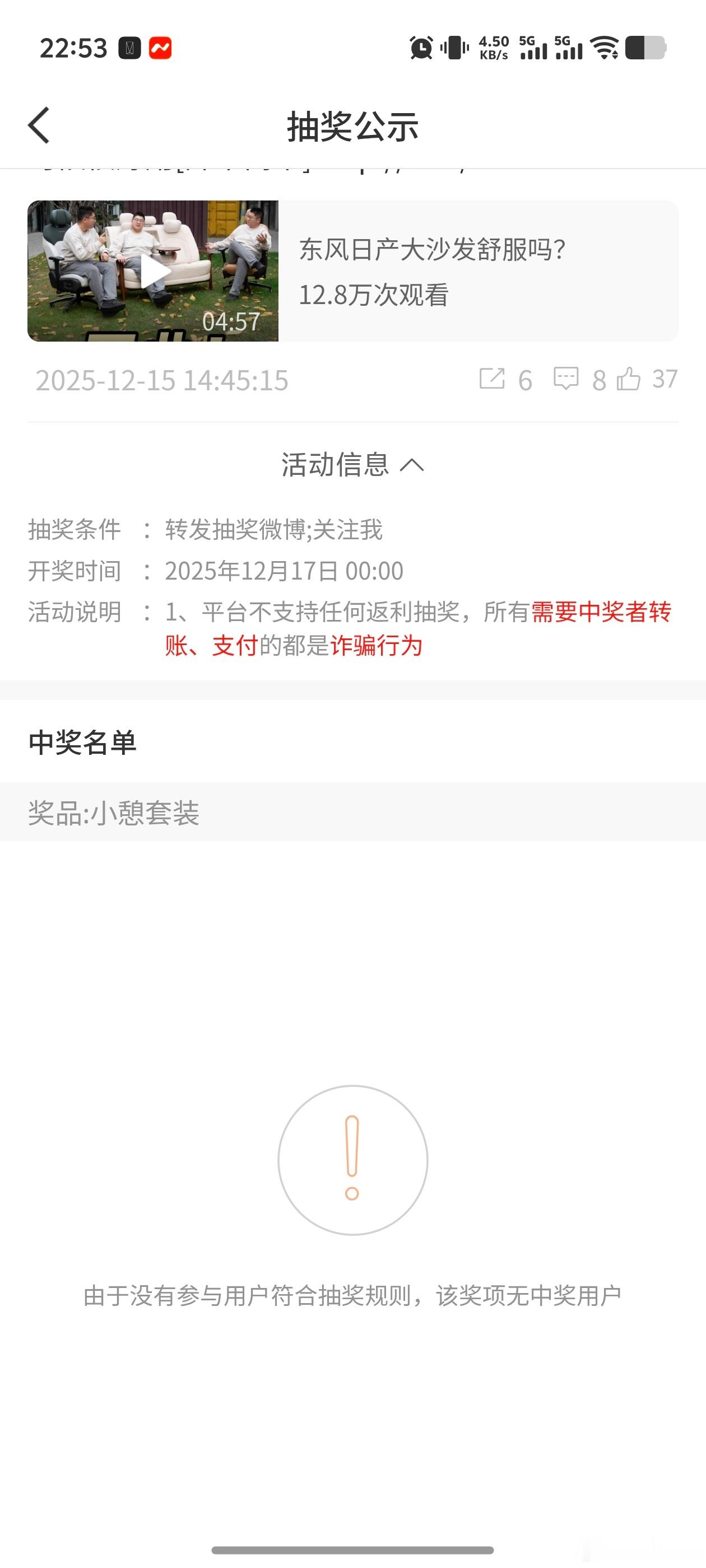 太奇怪了,最近的两个抽奖居然都没抽到符合条件的用户一个关注 + 铁粉 + 点赞,一个关注 + 转发,咱这要求不高吧。啥情况,是不是因为参与的人比较少?