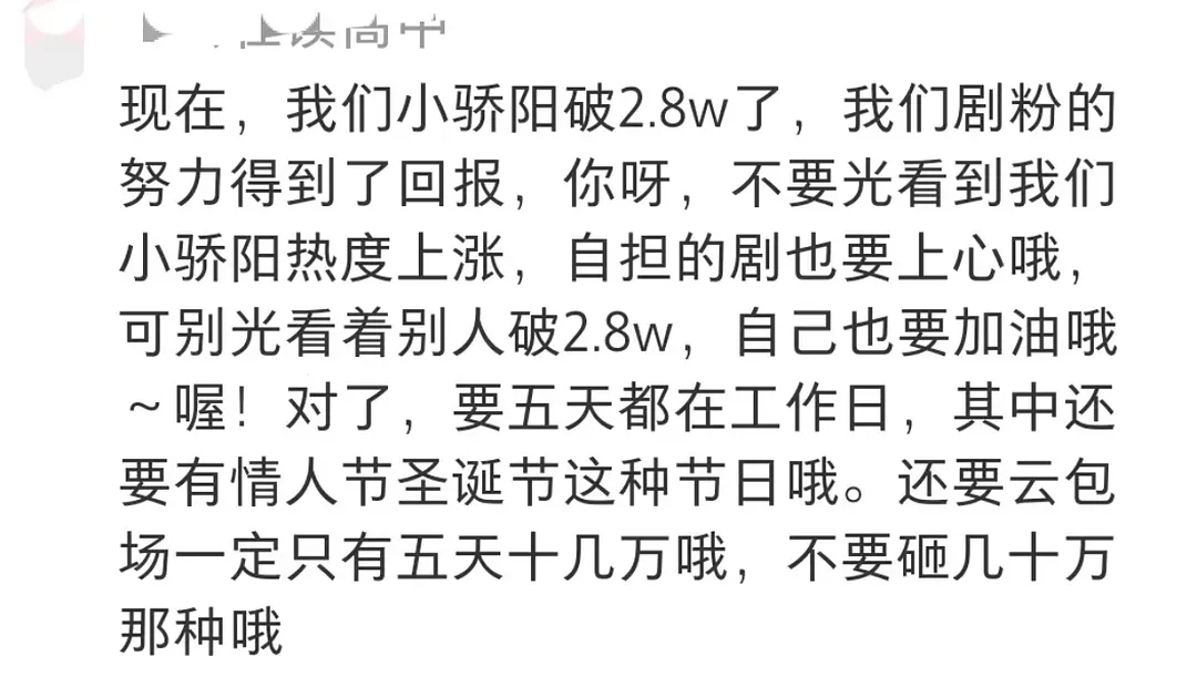我说云合2300的28000其实也不丢人,最丢人且搞笑的就是在这种节骨眼还喊着云合大砍和所谓的工作日播出😅