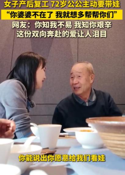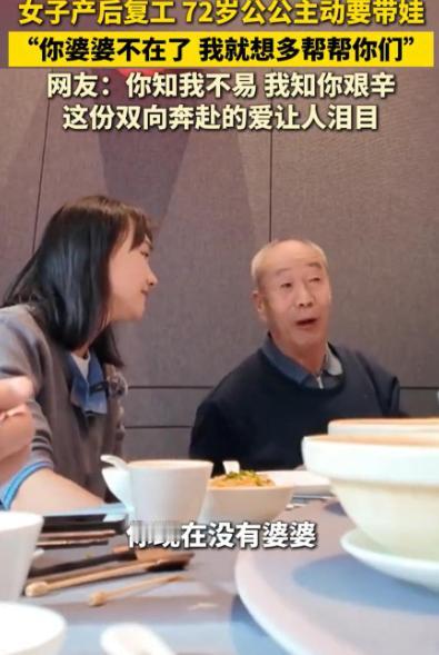 看哭了!家庭聚餐时,大家边吃边聊家常,本来都很高兴,不料,女子和她的公公二人却泪洒当场,原来,女子产后复工没人看娃,本想雇人,公公却执意要自己来看! 深夜两点的西安民居里,72岁的老爷子正腰背佝偻着摸索着冲泡奶粉。 昏黄的灯光下,他微微颤抖的手小心托着奶瓶摇晃,生怕惊扰了怀中熟睡的小孙子。 这份深夜的忙碌,是他过去一年多里的常态,也是一个普通家庭破解带娃困境的缩影。 谁能想象,这份看似寻常的付出,背后是一个小家庭曾濒临崩溃的困境。时间倒回一年多前,家中儿媳休完产假亟待复工,四个多月大的孩子成了无法逾越的阻碍。 夫妻二人皆是普通上班族,每月房贷车贷的压力已让日子捉襟见肘,八千块的育儿嫂费用更是成了遥不可及的奢望。 儿媳曾把所有求助的希望都逐一排除:亲妈需在家照料卧病的外公,半步不得离开。 丈夫常年在外跑工程,十天半月才归一次家,根本无力分担家务;而最该提供帮衬的婆婆,早已离世多年。 走投无路之际,她甚至已写好离职申请,做好了放弃工作专职带娃的准备。 她从未想过向独居的公公开口。这位72岁的老人,平日里以遛弯喝茶打发时光,过着清闲自在的独居生活。 让古稀老人放弃安稳晚年,整日围着尿不湿、奶粉打转,是儿媳无论如何都不忍提及的请求。 转机的出现毫无征兆。就在儿媳准备向领导递交离职申请的前一晚,公公主动将小两口叫至家中。 没有多余的寒暄,老人开门见山:“我知道你们难,娃我来带,你们安心上班,保证把孙子照顾好。” 简短的话语,瞬间化解了小家庭的燃眉之急。 面对儿子儿媳的担忧,以及亲戚们的劝说,老人态度异常坚决。 他那句掏心窝的话,成了最有力的回应:“你妈不在了,我就该替她尽点义务,能带孙子是我的福气,累不着。” 就这样,72岁的他正式接过了带娃的重担,从清闲老人变身全职带娃主力。 一年多的时光里,老人用行动兑现了承诺。 白天悉心照料孙子的饮食起居,把孩子养得白白胖胖、作息规律;夜里频繁起身冲奶换尿布,即便腰酸背痛、困倦难耐,也从未向任何人抱怨半句。 这份全然的付出,让儿媳彻底放心,家中甚至无需安装监控,便能安心投入工作。 情感的集中释放,发生在一次家庭聚餐上。 饭桌上,儿媳望着忙碌操劳的公公,积攒已久的感激终于化作泪水,她哽咽着说道:“爸,我到现在都记得你说要帮我们带娃的那天,那时候我都做好辞职的准备了,是你帮我们解了围。” 听到这番话,老人红了眼眶,笑着擦去眼角的泪水,没有过多言语,却将所有的心疼与牵挂都藏在了眼神里。 在场的家人无不动容,筷子停滞的瞬间,空气里满是亲情的暖意与动容。 这户人家的故事被邻居分享至网络后,迅速引发了无数年轻人的共鸣。 评论区里,有人感慨“双职工带娃太难,没长辈帮衬根本寸步难行”,也有人直言“这样的公公太罕见,长辈帮忙带娃从不是本分,而是沉甸甸的情分”。 类似的温暖在生活中并不鲜见,就像河南郑州那位70岁的奶奶,主动学习科学育儿知识帮儿媳带娃一样。 这些长辈的付出,没有惊天动地的情节,却以最朴素的行动撑起了小家庭的安稳。 这份跨越代际的亲情搭把手,值得被更多人看见与珍惜。 如果各位看官老爷们已经选择阅读了此文,麻烦您点一下关注,既方便您进行讨论和分享,又能带来不一样的参与感,感谢各位看官老爷们的支持!