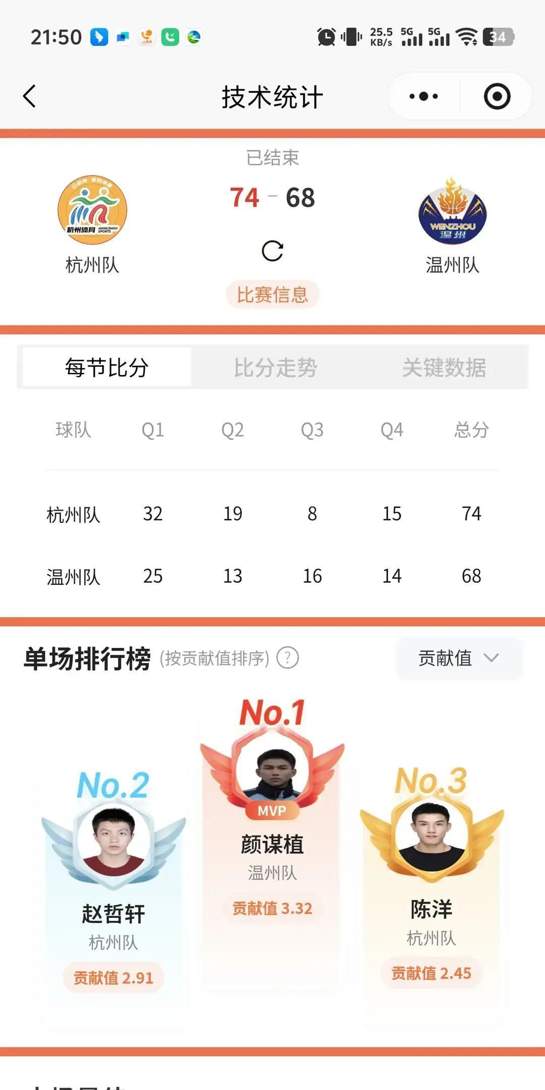 输了球,反而坐稳了榜首。赢了球,还得继续拼命追赶。 这就是昨晚浙BA的魔幻现实。杭州队74:68复仇温州,但温州队凭借首回合狂胜17分的优势,依然压杭州一头。规则写的明白:积分相同,先算你我交手的净胜分。 转折点撕开在第三节。温州核心戴子特领到第二次技术犯规,直接被驱逐。他捶了一下广告牌,头也不回走进通道。杭州队则在上半场就轰进了9记三分,后卫陈广宁一人射落5个。 更致命的是后续。浙江篮协公告刚出:戴子特追加停赛一场。下一轮,温州就要打硬骨头宁波。他们的铁血防守(场均仅失65.3分)昨晚被杭州得了74分,裂缝已经出现。 杭州队看到了反超的曙光。他们最后两轮的对手是湖州和舟山。但主帅不敢放松:“每一分都得抠,我们净胜分还落后。” 另一边,A组第三和第四的嘉兴、台州,只差一个胜场。他们将在最后一轮直接血拼,争夺最后一张季后赛门票。 一场胜利,从来不是终点。在这套规则下,每一节的得失分,都可能成为最后撬动排名的那根杠杆。真正的战斗,不在记分牌翻转的刹那,而在终场哨响前,你如何定义自己的排名。