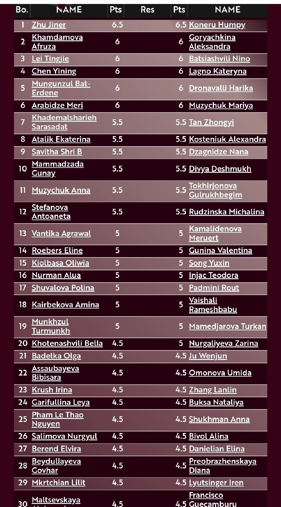 朱锦尔、科内鲁并列榜首! 在卡塔尔多哈举行的2025国际象棋快棋世锦赛战罢8轮,中国棋手朱锦尔和印度老将科内鲁同积6.5分,并列暂居榜首! 雷挺婕、陈一宁积6分,暂居第二集团。谭中怡积5.5分,暂居第三集团。宋宇新积5分,暂居第四集团。卫冕冠军居文君积4.5分,暂居第五集团。