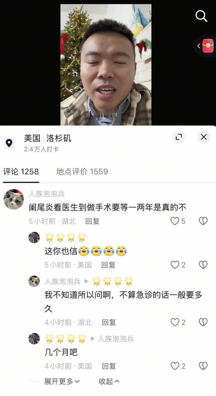 润人出面证明了,美国的医院手术预约时间,根本不像网上说的那么夸张。 说什么,一个阑尾炎,从看医生到做手术,一般要一两年时间。 对于这个说法,润人直接否认,根本没有那么长时间。最多也就几个月吧。 哈哈哈哈。 要不说美国人从容呢。 这要是在中国,一周之内保证已经出院了。