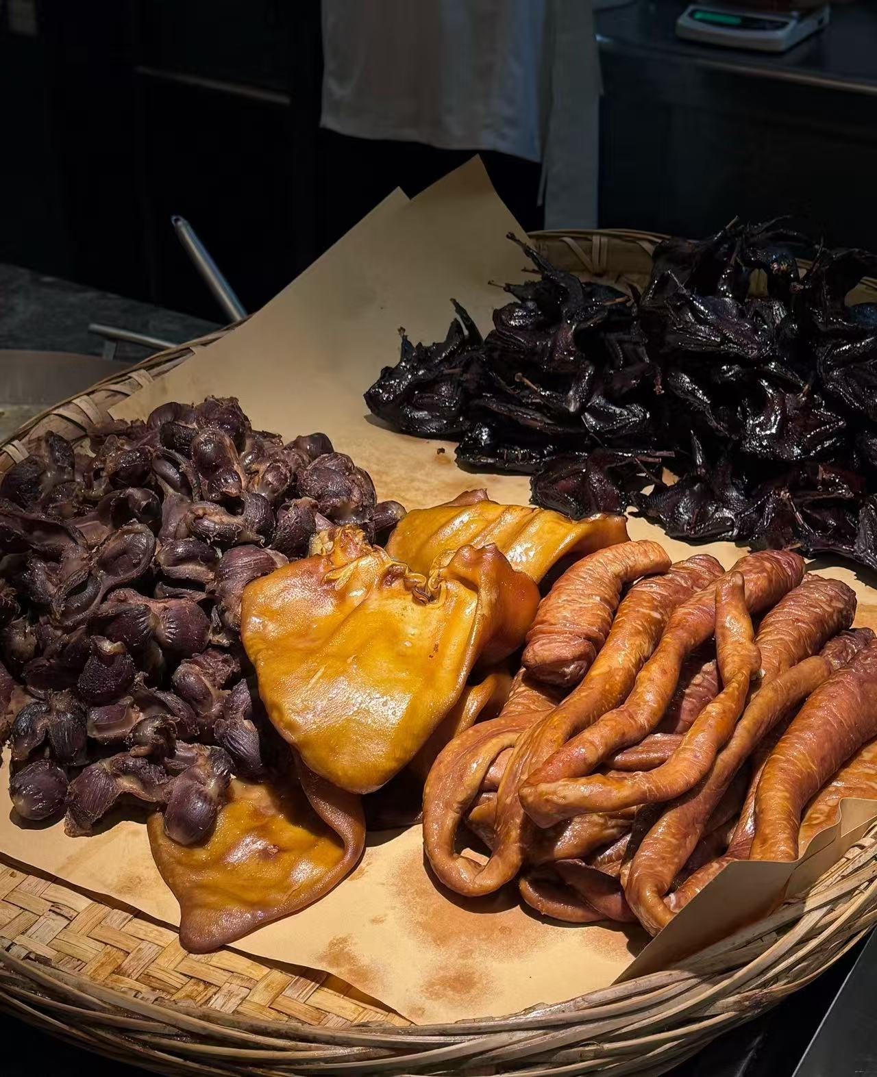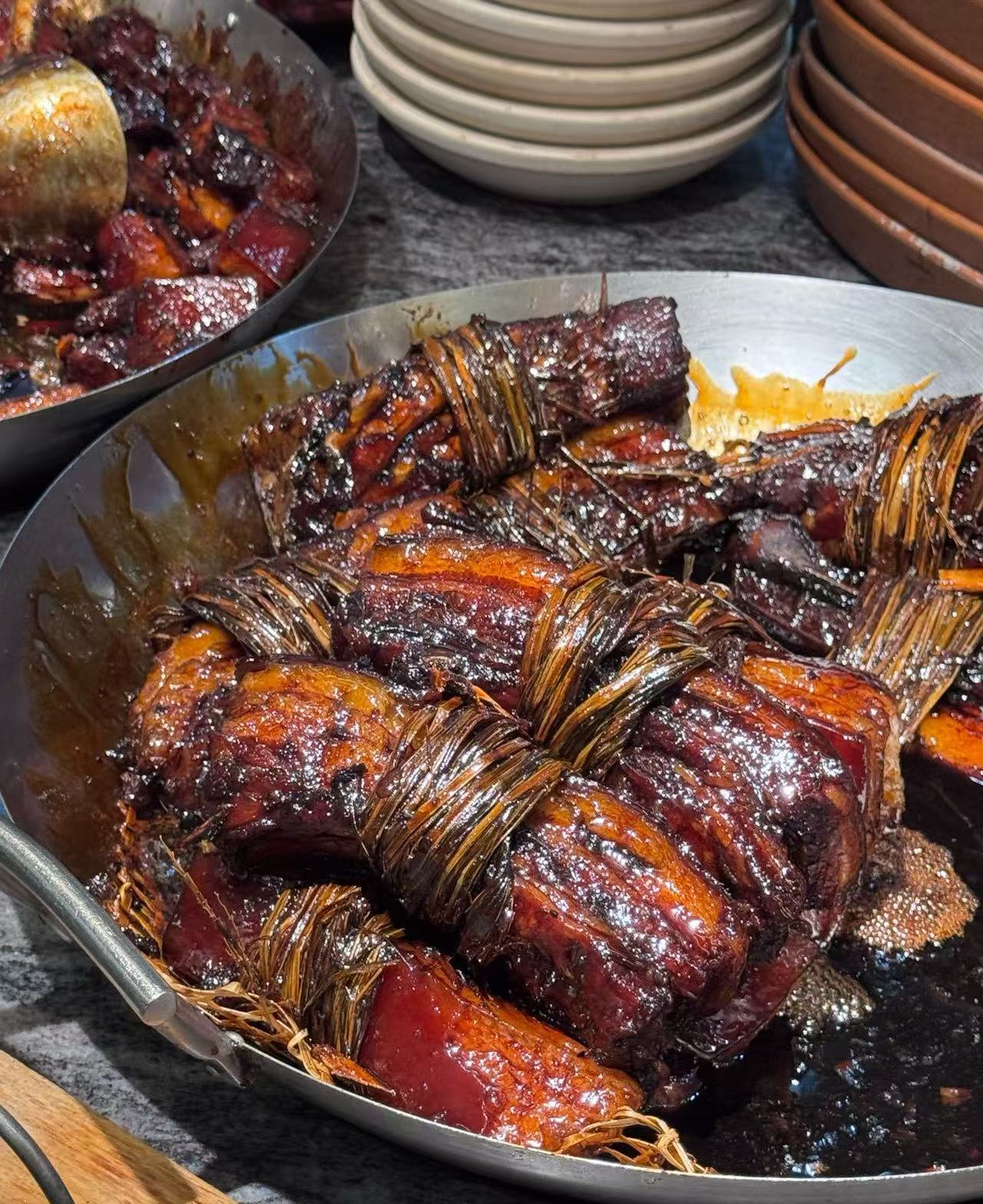 2️⃣.草扎黑猪肉,黑猪肉选用肥瘦相间,直接酱油烹饪,不腻口。