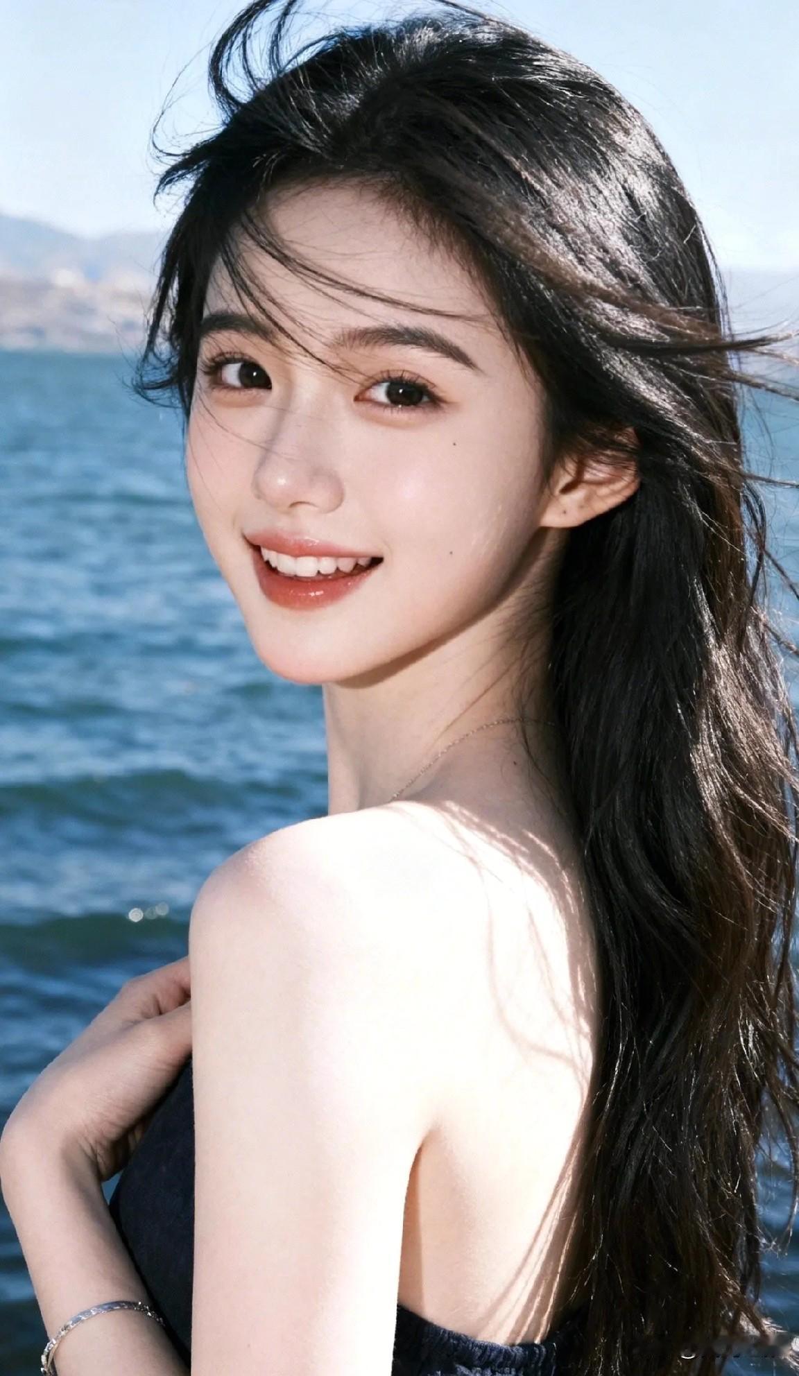 光之影 海边少女,微风轻拂,笑靥如花 海边活力少女 海边度假少女 海边白衣少女
