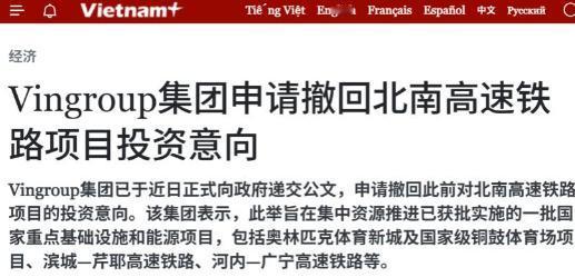 没了中国的参与,越南高铁果然以一地鸡毛的结果收场,短短8天不到,就让全世界看了个大笑话。 日前,越南首富范日旺创立的越南最大私营企业温纳集团(Vingroup)宣布撤回投标,正式放弃竞争越南政府重点规划的南北高铁项目,以便将更多精力放到其他项目上。 很多人把温纳集团的撤资归咎于资金压力,但很少有人注意到,这场闹剧的核心,是越南从头到尾都没拎清的“高铁本土化执念”。从项目重启的那天起,越南就没把“能不能建成”放在第一位,反而一门心思琢磨“怎么靠这个项目掌握核心技术”,这种脱离现实的追求,早就为失败埋下了伏笔。 2025年7月生效的越南《铁路法》里,就明确把“促进铁路工业发展及科技转让”当成核心目标,为了实现这个目标,越南甚至规划了一套看似详尽的国产化时间表:2032年后启动高速动车组组装,2035年实现20%本地化率,2040年提升到50%,2050年力争达到80%。为了配合这个时间表,越南还计划投资17.5万亿越南盾建河内铁路工业园区,号称要实现机车、货车甚至高铁零部件的自主生产。 想法听起来很美好,但现实却骨感得扎眼。根据越南铁路公司的统计,到2025年底,越南现有铁路系统里,至少有114台机车、1472辆货车和168辆客车要达到使用年限退役。 可即便缺口这么大,越南国内铁路行业至今还停留在旧系统维修更换的层面,别说生产高铁核心部件,连电力机车都造不出来,新型专用货车的制造能力也极其有限。 一个连普通电力机车都无法自主生产的国家,却想着在短短25年内把高铁本土化率做到80%,这种跨度堪比让刚学会走路的孩子直接跑马拉松。 为了实现这个不切实际的本土化目标,越南在国际合作上玩起了“多头押注”的游戏,刻意把中国排除在外后,转头跟法、日、韩、德等国的企业轮番洽谈。 一开始跟日本谈新干线技术,看中对方的抗震设计,却受不了高昂的成本和严苛的技术转让条款;后来又找法国阿尔斯通,喜欢对方的技术先进,却头疼维护费用太高;韩国的KTX系统也被纳入考量,对方承诺帮忙培训劳动力,可越南自己评估后发现,韩国从引进技术到实现本土化用了25年,自己根本等不起。 最终温纳集团选择跟德国西门子合作,2025年12月17日高调成立高铁子公司VinSpeed并签署协议,号称要引进Velaro Novo高速列车技术,还规划了河内到广宁、胡志明市短途线作为测试段。 可这场看似光鲜的合作,从一开始就藏着致命漏洞——越南忘了,不同国家的高铁技术体系存在天然差异,之前跟多国洽谈留下的技术残留,很可能导致后续系统兼容问题。 有越南内部技术团队做过模拟,要是混用不同国家的信号和动力系统,运行风险会成倍增加,后续维护更是会乱成一锅粥。 其实,本土企业的实力根本撑不起越南的本土化野心。温纳集团本身是做私营企业出身,此前在高铁领域毫无经验,即便拉上西门子,也解决不了核心的产业配套问题。 高铁建设是个系统工程,需要轨道、信号、供电、制造等全产业链协同,可越南连最基础的高铁零部件生产能力都没有,哪怕是简单的转向架、制动系统,都得依赖进口。 这种情况下,所谓的“本土化”只能是空中楼阁,温纳集团深入评估后发现,仅靠进口部件组装,不仅成本降不下来,还根本达不到越南政府要求的本土化率,后续大概率会被追责,这才急着抽身离场。 为了给本土化铺路,越南政府还刻意设定了“企业自负盈亏”的规则,拒绝为项目兜底。温纳集团最初提出的融资方案里,自己只出20%资金,剩下的536亿美元想靠政府35年零利率贷款兜底,可这个方案直接被越南财政部否决,理由是会影响国家信用评级。 可越南政府忘了,670亿美元的总投资相当于本国全年GDP的四分之一,这么大的资金压力,别说本土企业扛不住,就算是国际巨头也得谨慎掂量。没有政府兜底,又没有成熟的产业配套降低成本,温纳集团的撤资其实是早晚的事。 越南费劲心力追求的高铁项目,就算真能按计划推进,也根本不符合市场需求。越南南北之间的民航航线早已成熟,200到300元人民币的机票就能飞2小时,而高铁票价测算下来要700元以上,全程得5个多小时,性价比差距悬殊。 温纳集团的内部财务模型显示,30年运营期里年均收入才56亿美元,光年运营成本就高达42亿美元,再加上本土化带来的设备采购和维护额外支出,妥妥的“越运营越亏”。 现在温纳集团撤资后,转头去搞河内奥林匹克体育城、河内—广宁高铁这些小项目,显然是认清了自己的实力边界。而越南政府规划的铁路工业园区还在纸上谈兵,国产化时间表更是成了笑话,南北高铁项目再次陷入停滞。 脱离自身产业基础去追求不切实际的目标,再美好的规划也只能沦为笑柄,这或许才是越南高铁项目崩盘最该被吸取的教训。