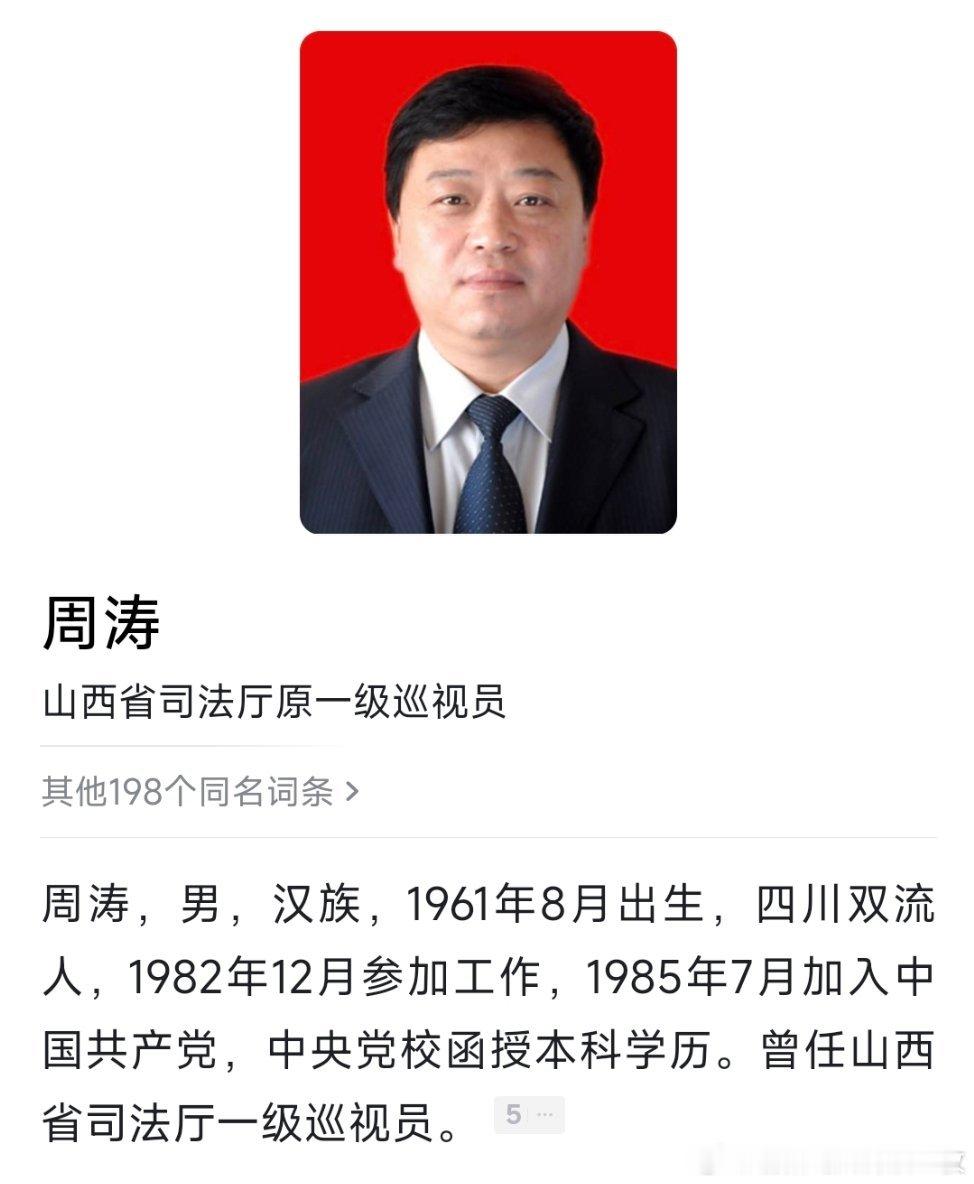 山西省司法厅原一级巡视员周涛接受纪律审查和监察调查。
