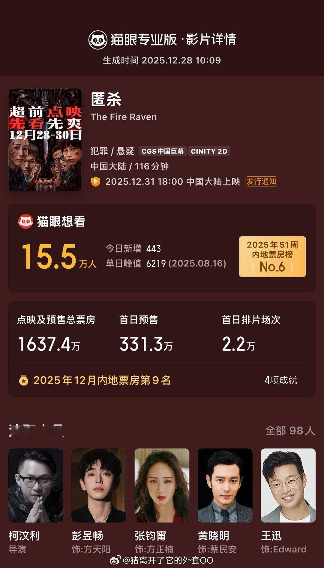 肖战包场支持彭昱畅电影《匿杀》,两人合作过电影得闲谨制,两位帅哥友谊长存呀!!