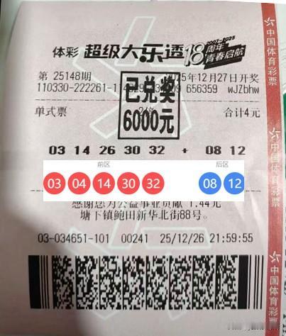 大乐透四等奖的"遗憾美学":4+2与二等奖的咫尺天涯 在彩票的世界里,命运有时就藏在一两个号码的差距中。大乐透四等奖4+2,看似与二等奖同样命中6个号码,奖金却相差十万八千里——这种微妙的"遗憾美学",恰恰是彩票最让人唏嘘的地方。 12月27日开奖的大乐透25148期,就上演了这样一幕"遗憾美学"。浙江一位彩民采用单式2倍投注,精准命中4+2,原本是值得庆贺的幸运。然而,当计算奖金时,那份喜悦或许会掺杂一丝遗憾:倘若当时多打110倍,四等奖的总奖金竟能与二等奖持平!这110倍的差距,成了现实与梦想之间那道难以逾越的鸿沟。 当然,我们也要清醒地认识到,超过百倍的投注在现实中终究是少数。彩票的魅力在于以小博大的可能性,而非孤注一掷的豪赌。理性投注、量力而行,才是享受彩票乐趣的正确打开方式。毕竟,运气从来不是靠倍数堆砌出来的,而是藏在每一次理性期待中的惊喜