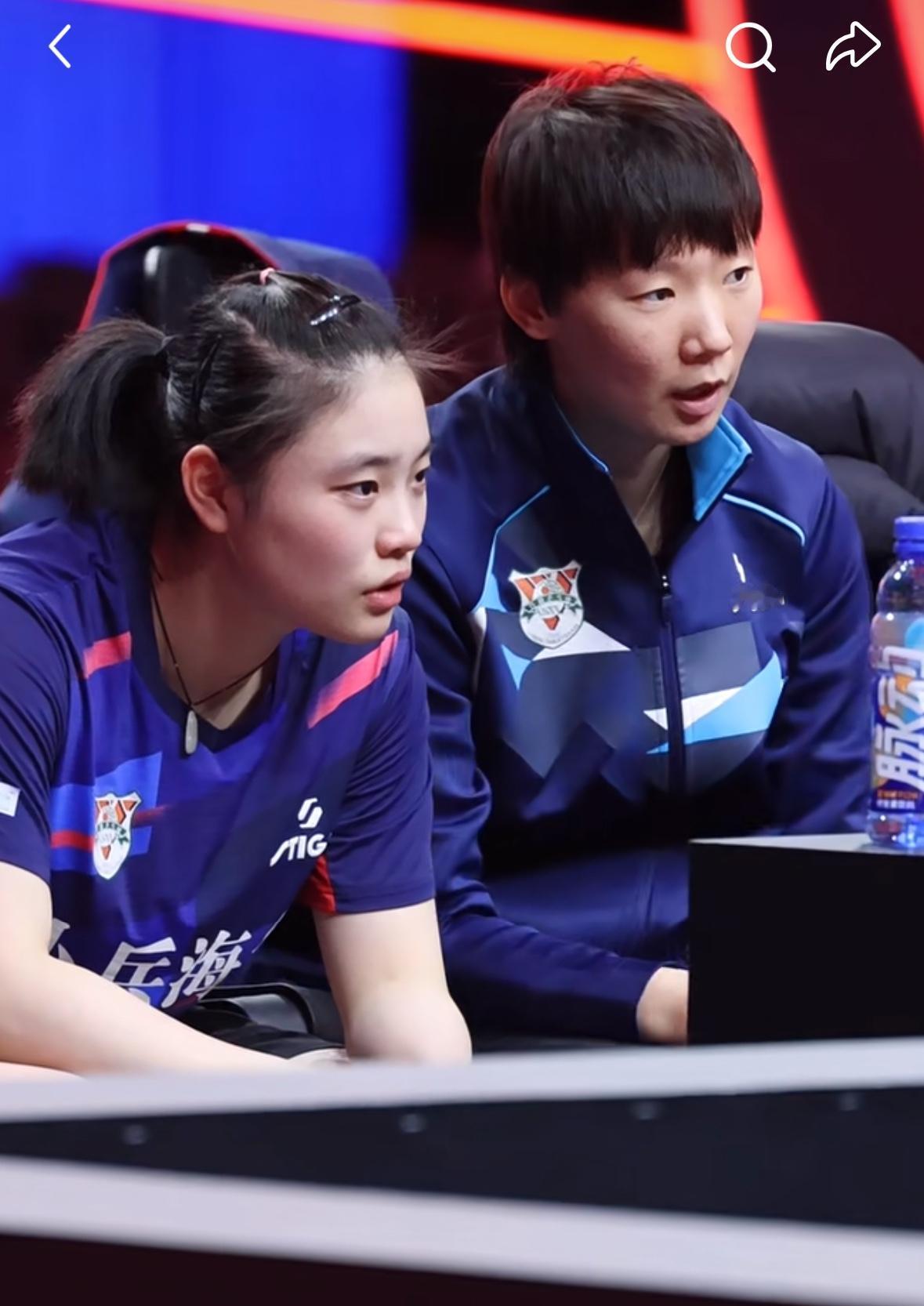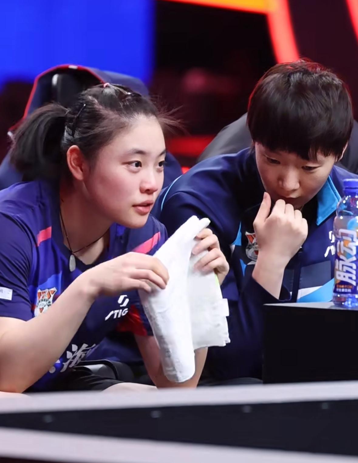 王曼昱帮助徐奕复盘——徐奕0:3覃予宣情绪低落😔 12月28日,乒超总决赛女团