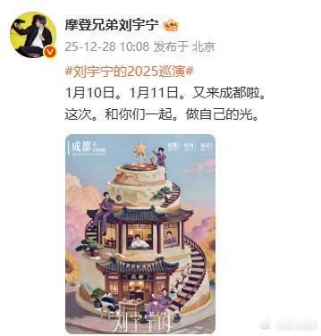 刘宇宁成都站双场正式官宣刘宇宁又来成都啦!成都站官宣双场,一起相约成都,把歌声吟成微风,拂过烟火人间!期待刘宇宁!2025娱乐年终盘点非正式跨年派对