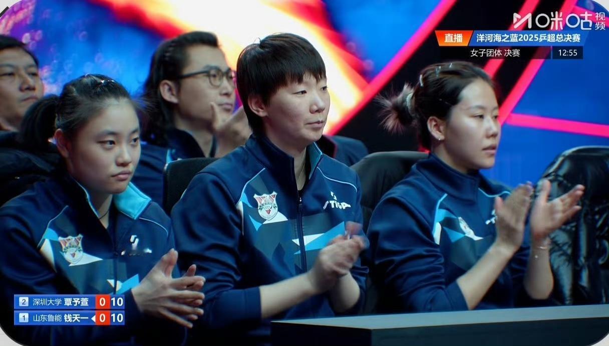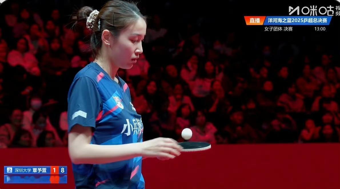 覃予萱要一单两分证明自己了吗[666]? 但国乒一队的钱天一即使退出培养竞争了,也是要面子的呀,不能输小队员吧[笑哭]。 这不,第四盘覃予萱先胜两局之后,钱天一扳回一局! 前三局比分为覃予萱12-10,11-2,9-11钱天一。 曼昱和同同两人坐在教练席给钱天一加油鼓掌的间隙,两人偷偷说个悄悄话[笑哭]。 这是2025年乒超联赛总决赛阶段女团决赛,评论区继续播报战况哦。