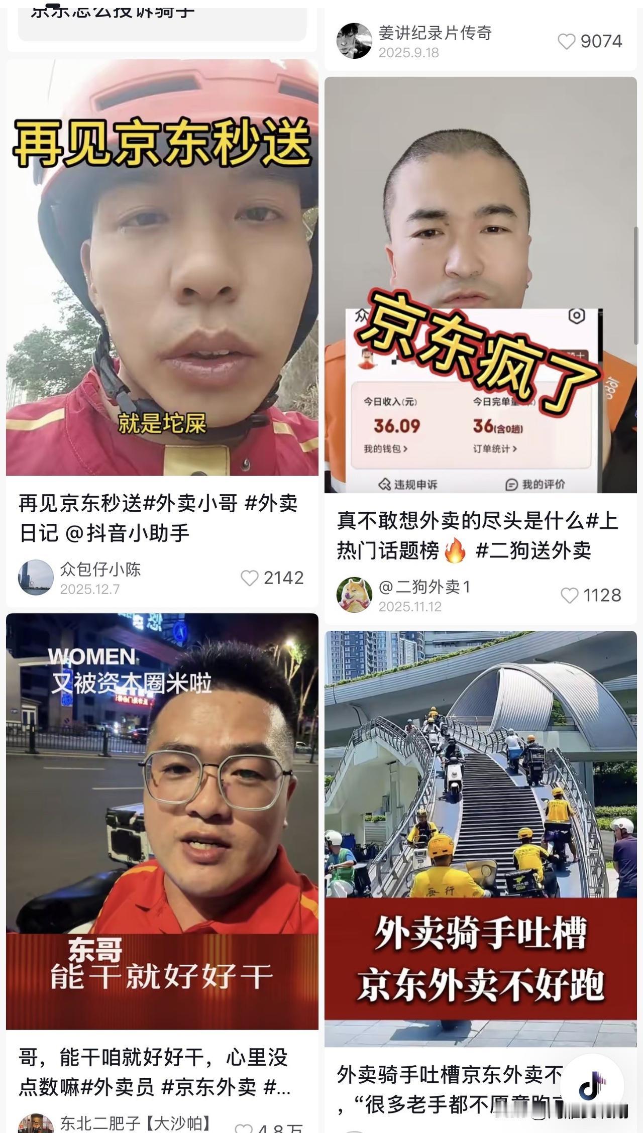回旋镖?东子因为降低单价被骑手痛骂 这波只能说东子犯了老毛病,一开始调子起的太高,被反噬了, 骑手普遍都是30-40岁,这些人对于拥有保险意愿的确很强,但是人家对于单价意愿更强 东子一开始给十几块钱的高单价把骑手吸引过来以后,现在直接单价降到比另外两家还低,那不就是找骂吗? 骑手需要挂靠站点才能拿单,当年为了高薪离职去了东子那些骑手,很多都和另外两家站长闹掰了才去了的京东,这些人得罪了站长,专送都是固定自己熟悉的区域,这样可以自己脑子里知道怎么跑,现在东子降价,这些人回不去原先的站点,只能去别的站点,去不熟悉的区域跑,一切从头开始。