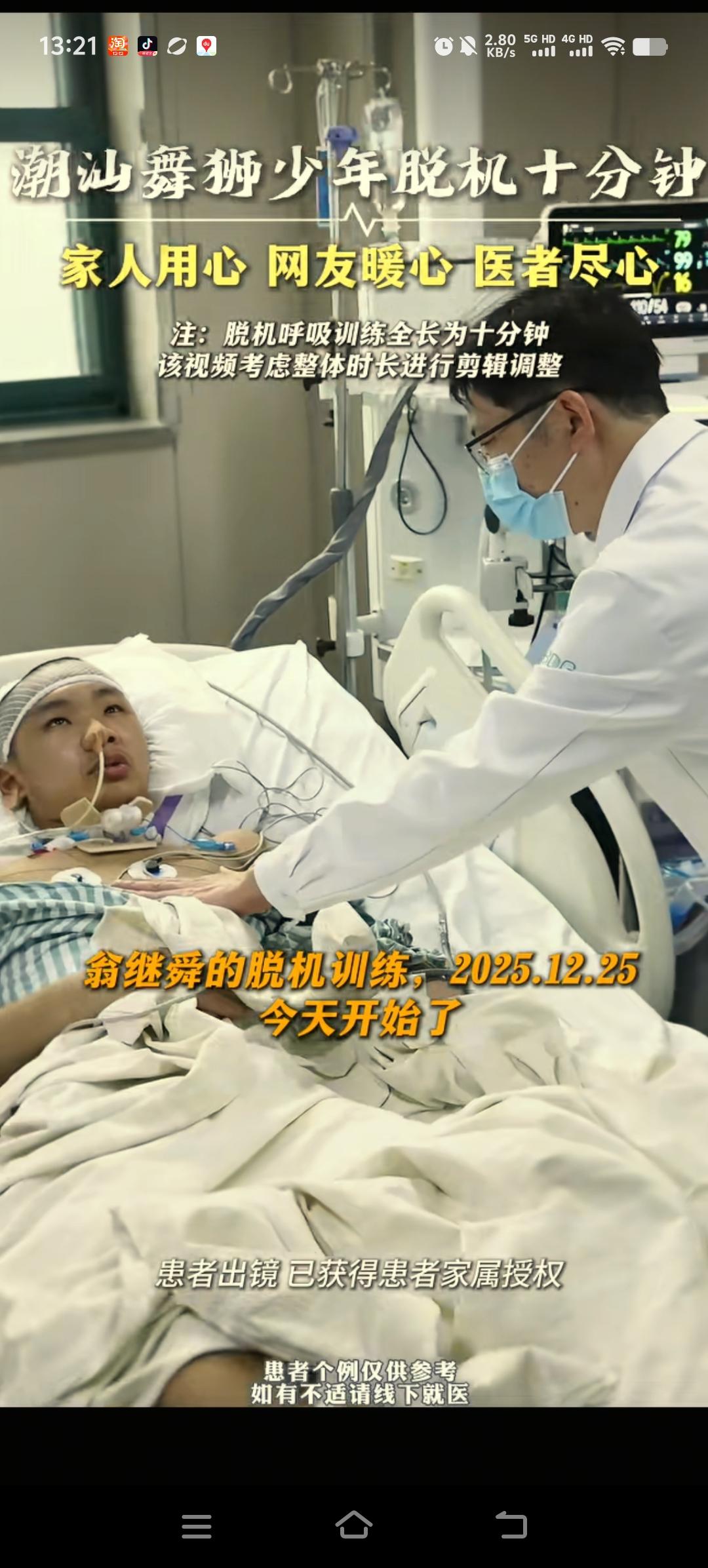 醒狮少年脱机训练半小时取得成功,凭借顽强的意志力,在医务人员的关怀与协助下,他的身体日渐康复。清晨,听闻这位舞狮少年的不幸遭遇,我心痛不已。 如今,他不仅得到了优质的医疗救治,在众多网友的帮扶下,必定能怀揣梦想重返熟悉的舞狮队,让传统文化绽放更耀眼的光彩。