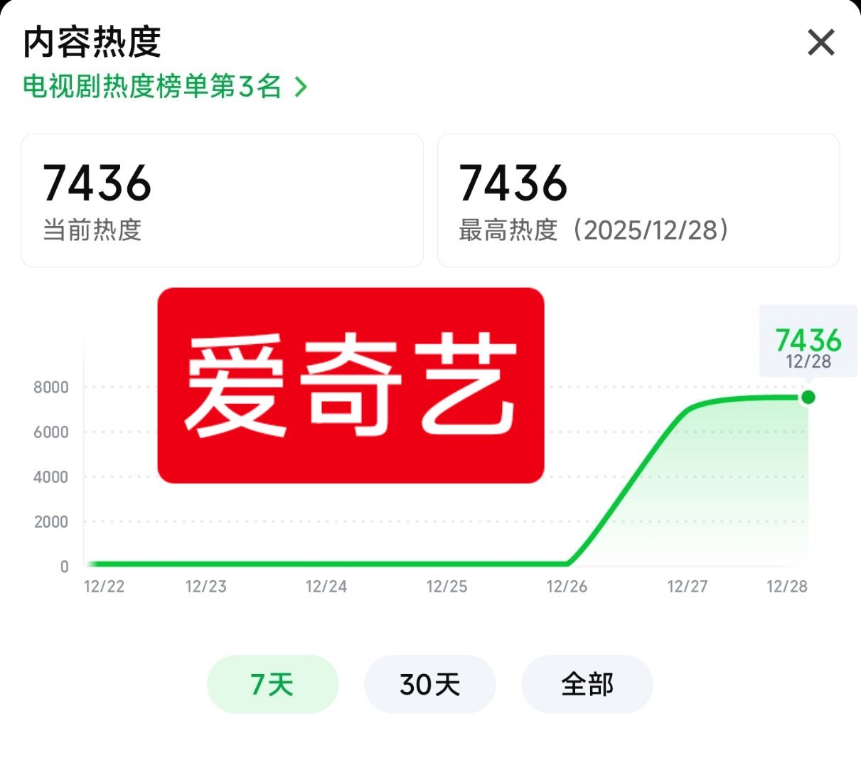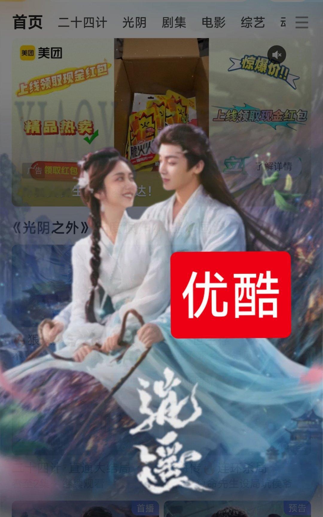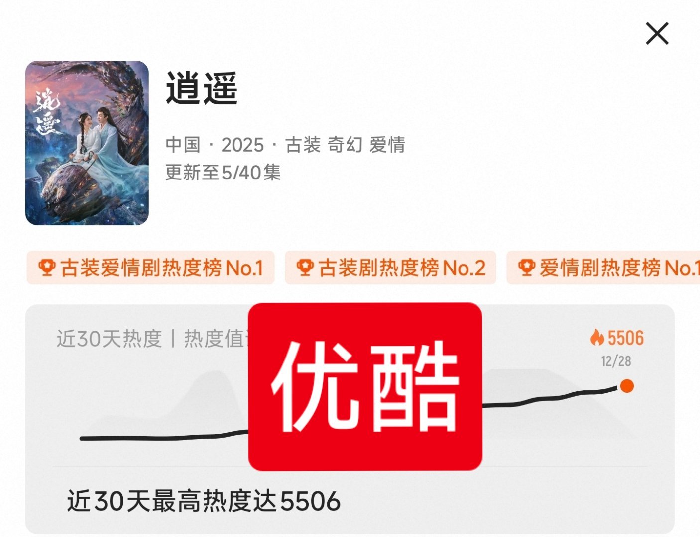 谭松韵,侯明昊主演的《逍遥》,首日热度——爱奇艺最高热度7436。优酷最高热度5506。两平台分流太厉害了,爱奇艺有专栏推广,优酷没有专栏,但有开屏广告。