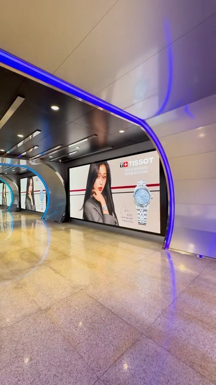 天梭品牌好宠代言人虞书欣,杭州随处可见超长地广大屏,排面拉满了!