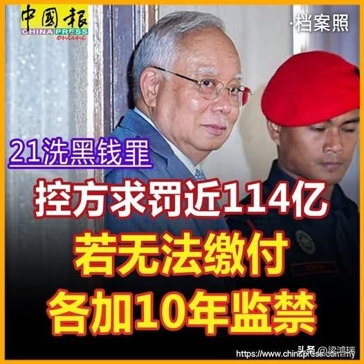 马来西亚吉隆坡高庭于 2025年12月26日(星期五) 正式裁定,前首相纳吉在“一马发展公司案(1MDB)”涉及的 25 项洗黑钱及滥权控罪全部罪名成立。 以下为控方诉求与法院最终判决详情: 1. 控方诉求 在判刑陈词阶段,主控官阿末阿克兰向法庭恳请: 监禁: 对纳吉每项滥权控状判处最高 20年 监禁。 罚款: 处以总计 113亿8788万8067令吉05仙(约36.15亿新元)的罚款。 2. 法院最终判决 承审法官柯林劳伦斯随后宣读判决: 总刑期: 判处监禁 15年。 4项滥权罪各判监禁15年; 21项洗黑钱罪各判监禁5年; 所有刑期同步执行。 罚款总额: 判处 113.9亿令吉(约36.15亿新元)的高额罚款。 额外处分: 若无法缴付罚款,每项滥权罪将加监10年(共40年)。 法庭另命令追讨纳吉名下 20.8亿令吉 的资产。 3. 执行情况 此项15年监禁刑罚将在纳吉目前因 SRC 国际公司案所服的刑期(预计 2028 年结束)届满后才开始执行。纳吉的代表律师已表示将针对此裁决提出上诉。