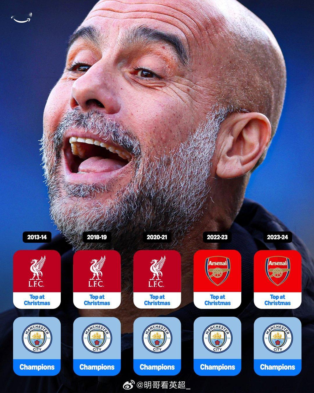 英超近5次圣诞冠军最后被逆转丢冠,全部都是曼城干的🔵🔙🏆本赛季,他们还能再