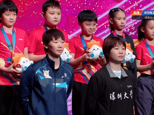 王曼昱和蒯曼为国少集训队选拔赛的小选手们颁奖[赞][笑哭]! 昨天王曼昱一单两分把山东鲁能队送进决赛,今天曼昱没上场。在场边当场外指导,连饭都是在场边简单解决的。 曼昱在场边给队友卖力加油,但最终比较遗憾,蒯曼所在的深圳大学队夺冠,山东鲁能摘银,但都是很好的成绩。 曼昱和蒯曼辛苦了,莎莎养伤没参赛,深圳大学也夺冠了,还是比较圆满的。