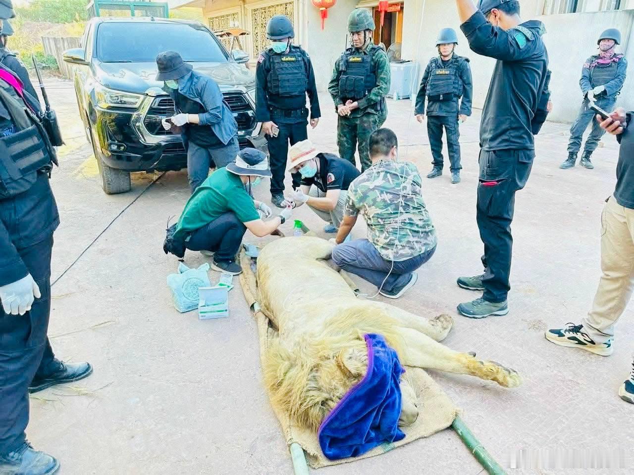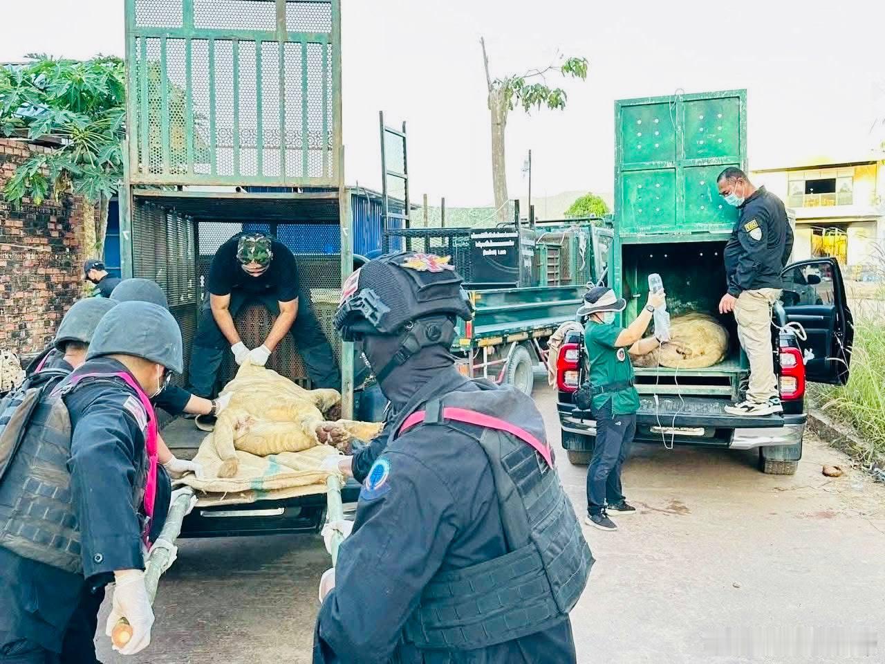 这是在一个叫做ThmorDa的柬埔寨电诈中心发现的狮子和黑熊,这到底是用来观赏